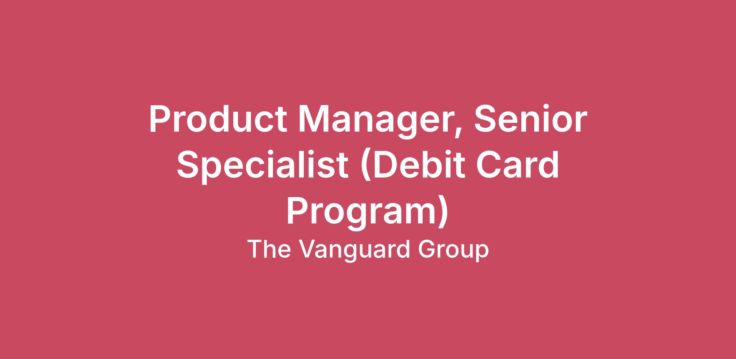 Product Manager (S4) – Vanguard Debit Card ProgramRole Summary Vanguard is exploring a Debit Card Solution to expand Cash Plus account services and meet everyday spending. This Senior Product Manager, Specialist will lead this net-new payment rail, owning vendor integration, card program design, and enterprise execution across Investing, Saving, and Spending experiences. This highly visible role operates at the intersection of payments, platform engineering, and financial ecosystems—with frequent exposure to senior leadership.This role is ideal for a Product Manager who thrives in ambiguity, enjoys building from zero-to-one, and can move fluidly between strategy and deep technical problem‑solving.Core ResponsibilitiesLead the end-to-end discovery and delivery of Vanguard’s Debit Card Program, from concept through launch and scaleOwn vendor integration and ongoing card program managementDefine debit card controls, fraud and transaction workflows across the Vanguard ecosystemPartner with engineering, data, compliance, operations, and external vendors to ensure seamless executionBuild and maintain an integrated roadmap, aligning vendor dependencies with internal product teamsCoordinate execution across the broader Data & Analytics (D&A) organizationInfluence enterprise stakeholders and regularly engage senior leadership on progress, risks, and tradeoffsEstablish operating models, metrics, and governance for a new payment capability This role requires payments experience and preferably debit card experience. Qualifications and SkillsMinimum 10 years of experience in product management or digital strategy roles. At least 3 years leading large cross-functional teams on major organizational projects preferred.Bachelor’s degree (B.E./B.Tech/B.A./B.Sc.) in Business, Computer Science, Engineering, or related field required; Master’s degree (MBA or equivalent) preferred.Good to have skills in digital product lifecycle management, market analysis, customer experience design, and stakeholder management. Strong capability in data-driven decision-making, product innovation, and cross-functional collaboration.Proficiency in tools such as Jira, Confluence, Aha!, and data analytics platforms (e.g., Tableau, Power BI) is preferred.Excellent verbal and written communication, critical thinking, and strategic planning abilities.Any of the following certifications are preferred: Certified Scrum Product Owner (CSPO), Pragmatic Institute Product Management Certification, SAFe Product Owner/Product Manager (POPM).Ability to thrive in fast-paced environments, balancing multiple priorities while delivering high-impact results.Special FactorsSponsorshipVanguard is not offering visa sponsorship for this position.About VanguardAt Vanguard, we don't just have a mission—we're on a mission.To work for the long-term financial wellbeing of our clients. To lead through product and services that transform our clients' lives. To learn and develop our skills as individuals and as a team. From Malvern to Melbourne, our mission drives us forward and inspires us to be our best.How We WorkVanguard has implemented a hybrid working model for the majority of our crew members, designed to capture the benefits of enhanced flexibility while enabling in-person learning, collaboration, and connection. We believe our mission-driven and highly collaborative culture is a critical enabler to support long-term client outcomes and enrich the employee experience.