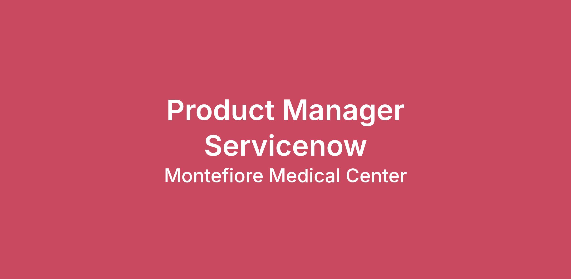 City/State:Yonkers, New YorkGrant Funded:NoDepartment:MIT - Epic - Technical ServicesWork Shift:DayWork Days:MON-FRIScheduled Hours:8:30 AM-5 PMScheduled Daily Hours:7.5 HOURSPay Range:$124,000.00-$155,000.00Montefiore is ranked among the top hospitals nationally and regionally by U.S. News & World Report. For more than 100 years we have been innovating new treatments, procedures, and approaches to patient care, producing stellar outcomes and raising the bar for academic medical centers in the region and around the world. Our work to improve health outcomes in underserved communities is unparalleled in the United States. Our workforce is among the most diverse in the US: Montefiore associates speak 60+ languages. As Montefiore has built paths to deliver lifesaving health outcomes to underserved communities, we are looking to the future of tech-enabled care delivery to create better experiences for patients, providers, and operations teams.We are seeking a ServiceNow Product Manager to be responsible for leading the ideation, development, and ongoing evolution of ServiceNow modules, products and solutions aimed at streamlining organizational workflows and improving the overall associate experience. This role involves collaborating with operational stakeholders, cross-functional teams and technology experts to define new, optimize existing and enhance digital journeys for Montefiore associates ensuring optimal experiences, and driving the adoption of ServiceNow solutions across the healthcare system.This position requires in-depth knowledge of ServiceNow and experience working in Agile/Scrum environments.Responsibilities include:Product Strategy & Roadmap: Help shape and execute on strategic roadmap for the ServiceNow platform, aligning with organizational objectives and end-user needs.Stakeholder Engagement: Collaborate with cross-functional teams within IT, operational stakeholders, and organizational leadership to gather requirements, define priorities, and drive platform adoption through solution development and optimization.Feature Development & Enhancements: Work with platform developers, architects, and organizational peers to define, design and deliver new or enhanced ServiceNow features and functions.Process Optimization: Proactively identify opportunities to streamline workflows, maximize automation and efficiently deploy new capabilities using the ServiceNow platform.Governance & Best Practices: Help to enable platform governance, security, compliance, and scalability by conforming to ServiceNow recommended practices and guidelines.User Experience & Training: Emphasize user experience by gathering feedback, improving usability, and driving platform expansion through adoption, training and communication.Metrics & Reporting: Define key performance indicators (KPIs) to measure success and drive data-driven decision-making.Requirements Include:4+ years of experience in Product management, IT service management (ITSM), or enterprise application management.Success leading complex operational and technology deployments across large organizations and end user groups.Strong knowledge of ServiceNow modules (ITSM, ITOM, HRSD, SPM, etc.), workflows, and integrations.Experience working in Agile/Scrum environments with tools like Jira, Confluence, or ServiceNow Agile.Strong ability to influence cross-functional teams and communicate complex ideas effectively.Ability to work closely with developers, understand APIs, and oversee integrations with other enterprise systems.Exceptional emotional intelligence, empathy, and relationship building.Montefiore Health System, Inc. is an equal employment opportunity employer. Montefiore Health System, Inc. will recruit, hire, train, transfer, promote, layoff and discharge associates in all job classifications without regard to their race, color, religion, creed, national origin, alienage or citizenship status, age, gender, actual or presumed disability, history of disability, sexual orientation, gender identity, gender expression, genetic predisposition or carrier status, pregnancy, military status, marital status, or partnership status, or any other characteristic protected by law.