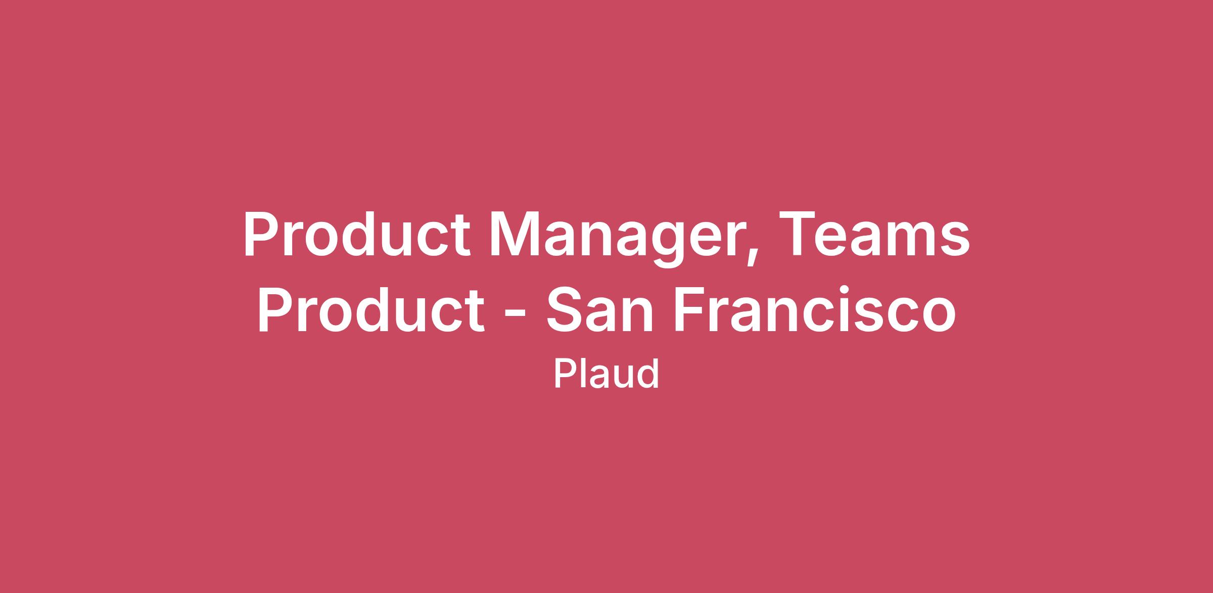 About Plaud Inc.Plaud is building the world's most trusted AI work companion for professionals to elevate productivity and performance through note-taking solutions, loved by over 1,500,000 users worldwide since 2023. With a mission to amplify human intelligence, Plaud is building the next-generation intelligence infrastructure and interfaces to capture, extract, and utilize what you say, hear, see, and think.Plaud Inc. is a Delaware-incorporated, San Francisco-based company pushing the boundary of human–AI intelligence through a hardware–software combination. With ISO 27001, ISO 27701, GDPR, SOC 2, HIPAA, and EN 18031 compliance, Plaud is committed to the highest standards of data security and privacy protection.To learn more about Plaud, please visit https://www.plaud.ai and follow along on Instagram, X, Facebook, LinkedIn, and YouTubeWhy You Should Join UsPlaud is building the next generation intelligence infrastructure and interfaces to capture, extract, and utilize intelligence from what people say, hear, see, and think.Plaud is a bootstrapped, skyrocketing, profitable company with a $250M revenue run rate achieved in just three years.Define the next-gen paradigm for human-AI interaction.Gain exposure to cutting-edge AI for Pro tools and play a direct role in our global expansion.Work with passionate teammates who value innovation, collaboration, and customer success.Grow your career in a culture that champions continuous learning and fast career development.Market-competitive compensation, global exposure, and a vibrant, creativity-fueled work atmosphere.What you will doOwn the Teams monetization strategy and roadmap: plan design, pricing/packaging, workspace & seat model, and upgrade/downgrade paths.Design and ship admin-led purchase and lifecycle flows: checkout, renewals, cancellations, seat changes, refunds, and clear in-product messaging.Define entitlement and precedence rules so Teams and consumer plans can coexist cleanly in one app (eligibility, access control, context switching).Partner closely with Product, Engineering (Payments/Platform), Growth, and Operations to align on architecture, trade-offs, and execution.Set success metrics and drive closed-loop optimization through instrumentation, funnel diagnostics, experiments, and post-launch iteration.Skills, qualifications and experience we look for5–8+ years of product management experience, including ownership of B2B product experiences.Hands-on experience shipping payments/checkout-related product work (e.g., purchase flows, payment methods, refunds/chargebacks, order state).Proven ability to deliver complex, cross-functional products end-to-end with engineering and design partners.Data-informed decision making: comfortable defining metrics and using funnels/cohorts to guide prioritization.Strong communication and stakeholder management across multiple teams.What we offer Meaningful Ownership An Employee Stock Ownership Plan (ESOP) that gives a real stake in Plaud’s long-term success.High-Impact Environment Work in a fast-moving, product-driven environment where your ideas directly shape the future of AI productivity.Comprehensive Health & Retirement Benefits Top-tier medical, dental, and vision insurance for employees and dependents, supported by a generous employer subsidy, plus a 401(k) retirement plan with company matching for full-time employees.Time Off & Workplace Benefits Unlimited PTO, plus 13 paid holidays, 12 weeks of fully paid parental leave for all parents, a hybrid work model with a minimum of three in-office days per week, and access to high-quality office snacks, drinks, and equipment.Cutting-Edge AI Tools for Productivity Access to best-in-class AI tools, including Cursor, GPT models, Gemini, Claude, and other frontier AI systems to maximize engineering and execution efficiency.Best-in-Class Equipment Choice of top-spec laptops, high-performance workstation setups, and cutting-edge Plaud devices for all new hires.Team & Culture Annual company offsites, team events, and a culture that values craftsmanship, ownership, and velocity.