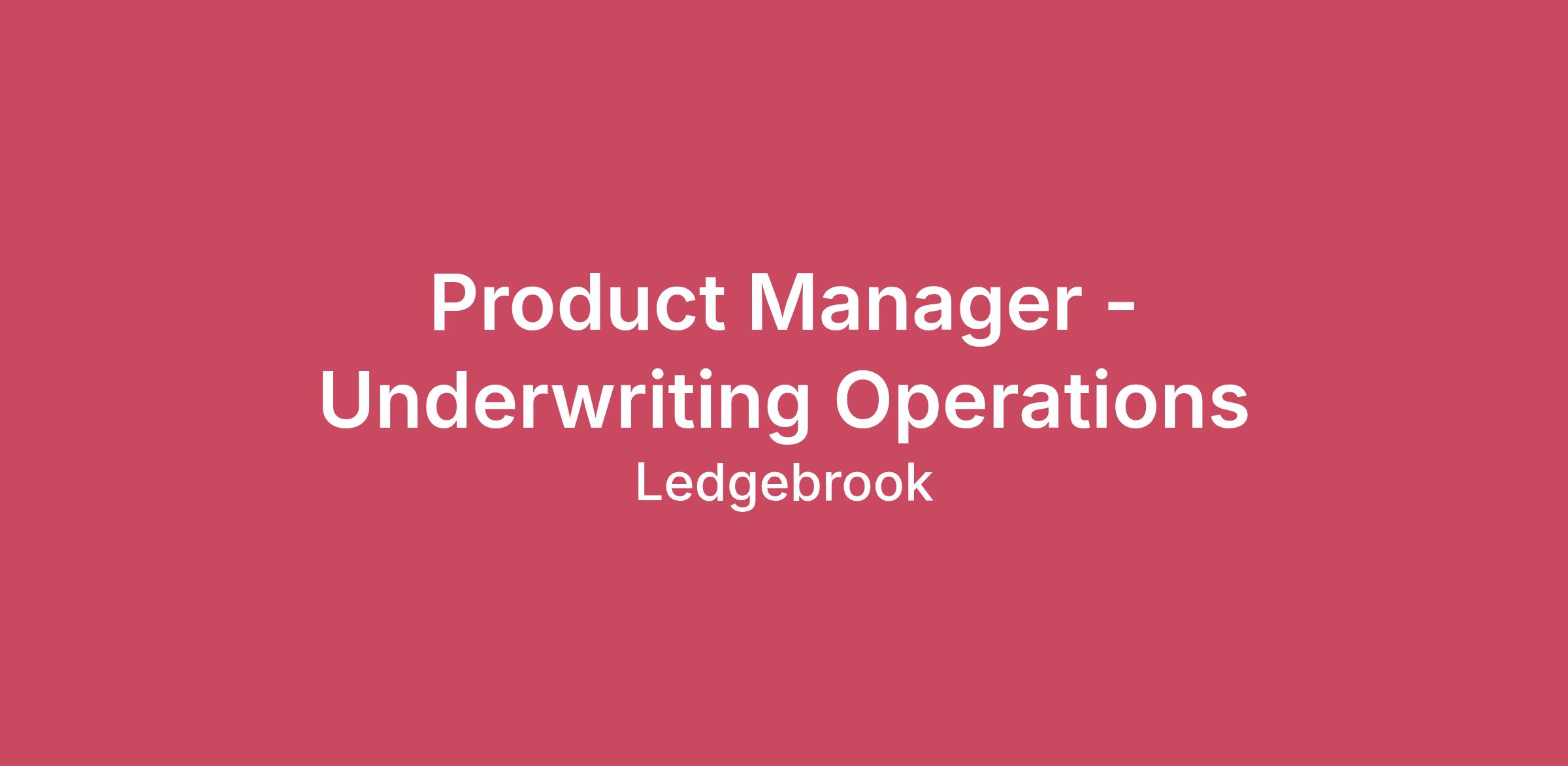 Ledgebrook is an InsurTech MGA on a mission to bring Specialty insurance into the modern era. Burdened with legacy technology and processes, the industry has not kept pace with the speed of innovation seen in other sectors. Positioned at the cutting edge of the next generation of InsurTech, Ledgebrook offers the best of both worlds: innovative world-class technology deployed by a leadership team armed with over 100 years of insurance expertise.Our long-term vision is to become a diversified full stack Specialty re/insurer competing with legacy carriers in product lines & markets across the globe. To get there, Ledgebrook builds its premium base by rolling out a new Specialty product every ~6 months until we prove enough traction to raise a balance sheet, become a full stack carrier and eventually compete in the reinsurance markets. Our initial product is a domestic primary and excess GL E&S policies sourced via wholesale brokers.At Ledgebrook, everything we do is driven by our culture: Care, Strive, Thrive Together. To succeed in modernizing the industry, we must first succeed in changing the way we do business. Talent density is our north star; fewer, better people working together as one. To that end we’ve replaced all individual incentives with generous equity packages. We play as a team, we win as a team. Everyone benefits handsomely from Ledgebrook’s success. Ledgebrook is a fully-remote US based company backed by top venture and family office investors including Brand Foundry, American Family Ventures, Duquesne Family Office, and Stephens Group. We’re a fully remote team prioritizing impact, ownership, and collaboration. We’re looking for a talented Product Manager to lead the strategy, execution, and delivery of our operations application. You’ll partner closely with engineering and Underwriting Operations leadership to define priorities, manage sprints, and ensure our Underwriting Operations roadmap aligns with company goals.The ideal candidate thrives at the intersection of technology and business, comfortable writing user stories, coordinating across teams, and driving delivery for high-impact internal systems.Tech StackProduct Tools: Jira, Confluence, Loom, Slack, Figma, LaunchDarklyReporting/User Metrics: PowerBI, UserpilotWhat you’ll doOwn the product lifecycle for Ledgebrook’s Underwriting Operations initiatives from discovery through delivery and measurement.Lead agile ceremonies (sprint planning, retrospectives, standups) and manage Jira: creating, refining, and validating stories to ensure clarity and readiness for release.Partner with engineering leads to translate complex technical initiatives into clear deliverables, balancing strategic priorities with day-to-day execution.Collaborate with stakeholders across engineering, actuarial, underwriting, finance, and operations to understand needs and define roadmap priorities.Define success metrics and use data to track outcomes, improve processes, and guide investment decisions.Ensure technical readiness for releases, coordinating QA, documentation, and stakeholder communication.Lead roadmap planning, aligning quarterly and annual objectives with company OKRs and evolving business needs.Champion internal adoption of new tools, ensuring teams across the company derive measurable value.Drive continuous improvement in team velocity, delivery predictability, and agile maturity. You combine structured product thinking with a systems mindset. You can bridge technical depth with business context, turning complex problems into solutions with tangible business impact. You’re organized, collaborative, and thrive on making teams more effective. You have demonstrated a data-driven approach to decision-making and a commitment to delivering high-quality products that meet customer needs. You are able to define and measure key success metrics for products, and use data to inform product strategy and make informed decisions. Must haves5+ years of product management experience, ideally supporting application teams.Proven success leading agile software development teams and managing workflows (epics, sprints, story validation).Strong communication and stakeholder management skills, able to synthesize competing priorities into a clear plan.Comfort with technical topics such as APIs, cloud infrastructure, data pipelines, and system reliability.Analytical and metrics-driven approach to prioritization and success measurement.Experience managing complex cross-functional projects from ideation through delivery.Ability to navigate ambiguity and provide clarity for engineering and business partners.Nice to havesFamiliarity with the Insurance Industry and its processes (Underwriting, Claims, etc.)Understanding of cloud infrastructure (AWS, Terraform, ECS, IAM, networking).Experience in Insurtech or another regulated, data-heavy industry.Hands-on familiarity with defining application design (Figma, Sketch, XD, etc.)Experience driving adoption of internal tooling or developer productivity platforms.Background in agile coaching, process design, or operational excellence.Coordination of large scale software rollouts across multiple teams. Competitive salary + meaningful equity ownershipCompletely remote, flexible schedule, and monthly coworking gatheringsUnlimited paid time offWork with an ambitious, smart, fun team to transform a $1T global industryOwnership, autonomy, purpose