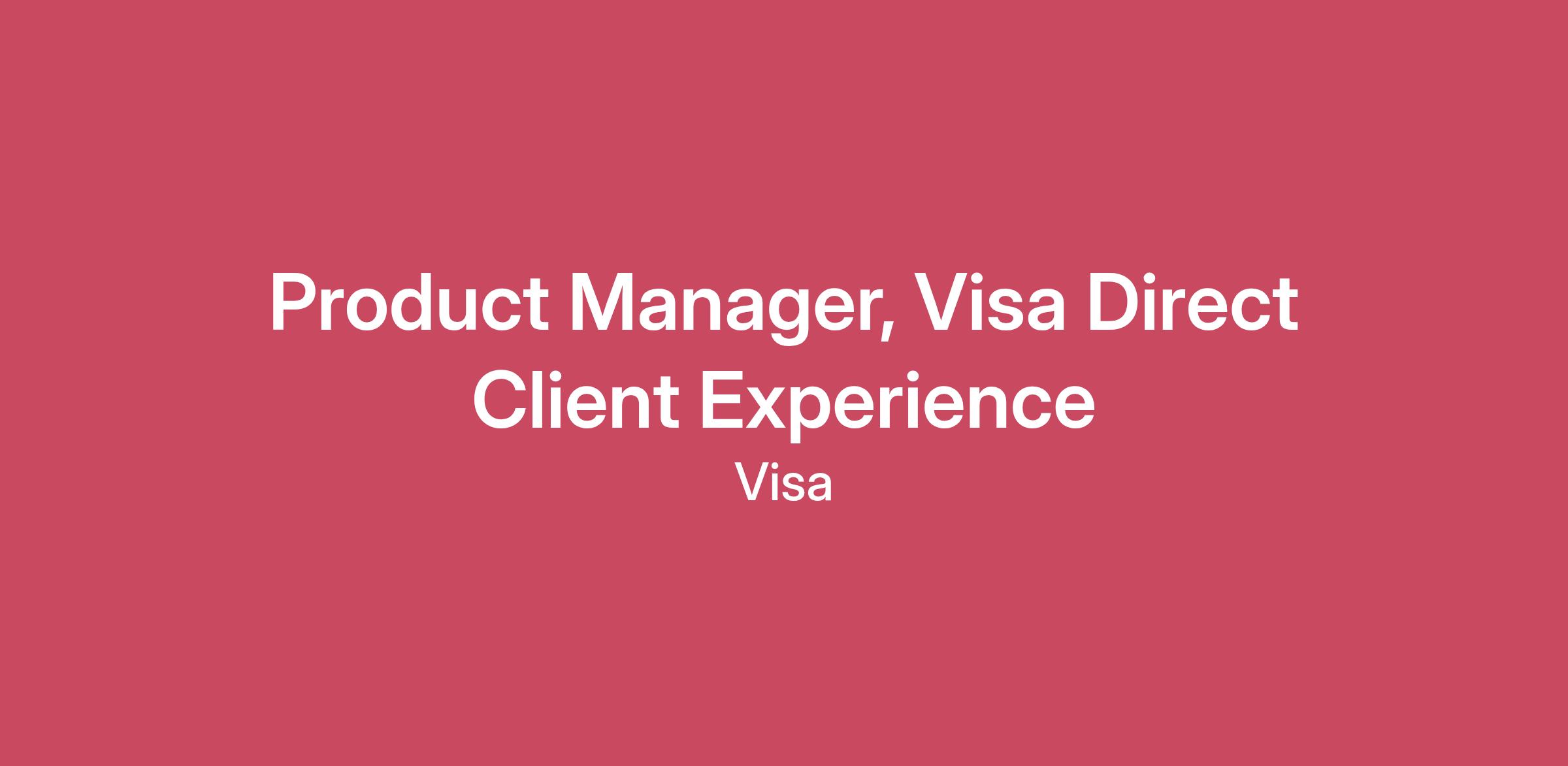 Company DescriptionVisa is a world leader in payments technology, facilitating transactions between consumers, merchants, financial institutions and government entities across more than 200 countries and territories, dedicated to uplifting everyone, everywhere by being the best way to pay and be paid.At Visa, you'll have the opportunity to create impact at scale — tackling meaningful challenges, growing your skills and seeing your contributions impact lives around the world. Join Visa and do work that matters — to you, to your community, and to the world.Progress starts with you.Job DescriptionAs Product Manager for the Client Experience team within Visa Direct’s Money Movement Solutions, you will be responsible for executing the vision and strategic roadmap for Visa Direct Portal. Reporting to the Director, who is accountable for defining overall vision and strategy, you will be the primary driver for execution and delivery of key initiatives of Visa Direct Portal. You will work closely with Technical Product Managers, Architects, Engineers, Delivery Managers, and cross-functional Stakeholders to deliver solutions that set the industry standard for exception handling in transaction processing.Strategy and Vision:Partner with the various Product Managers to refine and drive the execution of key initiativesTranslate the high-level strategy and vision into actionable product backlogs and milestones, focusing on automation, operational excellence, and phasing out legacy systemsConduct thorough market, customer, competitor, and technology research to inform product decisions and execution prioritiesSecure buy-in from stakeholders across compliance, engineering, and business teamsDrive an AI-first approach for Visa Direct Portal platform to enhance product discovery, delivery, and client experienceCollaboration and Solution Delivery:Lead requirements workshops and discovery sessions with clients, regional teams, and internal users to uncover pain points and identify opportunities to improve the Visa Direct Portal platform.Partner closely with the Technical Product Manager to ensure business requirements are translated into robust solutions and technical architectures, ready for engineering developmentOversee the transition from solution design to engineering, ensuring requirements are clearly documented and prioritized for sprints (including both functional and non-functional needs)Actively participate in agile ceremonies, providing business context and clarifying priorities as features move through developmentProduct Development and Launch:Manage end-to-end product development from planning through execution and launch, with a focus on delivering on the phased roadmapPrioritize the product backlog based on customer impact, commercial value, and strategic alignment, working across multiple scrum teams as neededCollaborate with delivery managers and engineering leads to ensure high-velocity delivery and continuous process improvementAdoption and Performance:Work closely with Product Marketing and Go-To-Market teams to define launch strategies, product positioning, and user enablement plansDrive adoption among clients, downstream partners, and internal teams, ensuring successful migration from legacy systemsMeasure, monitor, and communicate product KPIs and business impact, including case handling rate improvements, integration success rates, cost savings, and client satisfactionSo, what do we expect of you, day to day?Lead and participate in requirements workshops, gathering and refining input from regional stakeholders, clients, and internal users to define actionable product featuresCollaborate closely with the Technical Product Manager to align solution design and architecture, ensuring clear and complete handoff to engineering for deliveryContinuously prioritize and manage the product backlog, updating it based on feedback, the phased roadmap, and evolving business prioritiesCommunicate regularly with cross-functional teams—to clarify priorities, resolve blockers, and drive alignmentActively participate in agile ceremonies such as backlog grooming, sprint demos, and retrospectives, providing business context and making timely decisions for the teamTrack and report on key product metrics using insights to drive continuous improvementSupport product launches and adoption by collaborating on go-to-market activities, preparing user documentation, and assisting with internal and external user enablementParticipate in client demo call for the Portal, enable client onboarding on the Portal and work with stakeholders to resolve any client issues with respect to onboarding or usage of Portal.What success looks likeConsistent delivery of roadmap milestones with a focus on automation, operational efficiency, and secure integrationsHigh-velocity shipping of new features that reduce manual work, improve case resolution times, and enhance security and client satisfactionAchieving measurable business outcomes and client satisfactionDeep engagement and strong partnerships with both technical and business stakeholdersThis position is not required to travelThis is a hybrid position. Expectation of days in the office will be confirmed by your Hiring Manager. QualificationsBasic Qualifications:5 or more years of relevant work experience with a Bachelor's Degree or at least 2 years of work experience with an Advanced degree (e.g. Masters, MBA, JD, MD) or 0 years of work experience with a PhDPreferred Qualifications:6 or more years of work experience with a Bachelor's Degree or 4 or more years of relevant experience with an Advanced Degree (e.g. Masters, MBA, JD, MD) or up to 3 years of relevant experience with a PhD3-4+ years’ proven experience in a Product Owner/Product Manager role within Fintech, SaaS, or enterprise software, ideally with exposure to payments, transaction banking.Experience working in a web portal, ability to liaison with UX design team to enable best user experienceStrong experie