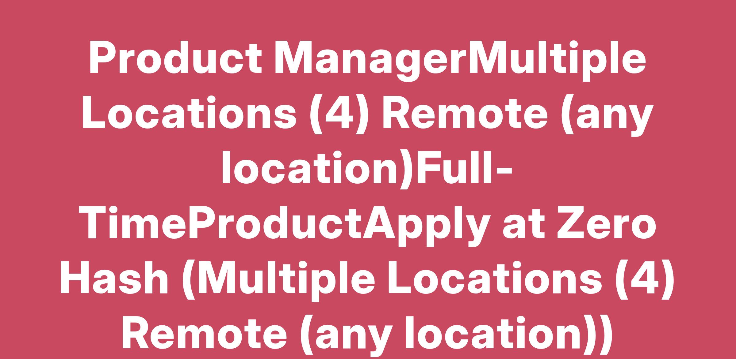 Product ManagerMultiple Locations (4) Remote (any location)Full-TimeProductApply at Zero Hash (Multiple Locations (4) Remote (any location))