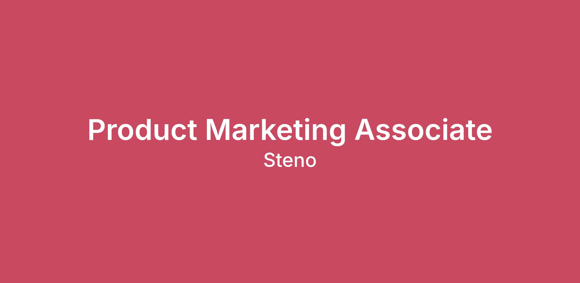 Wins together – Stock options included. When Steno grows, you grow.Invests in you – Generous company-sponsored health plans for employees and dependents, including comprehensive vision & dental - well above industry benchmarks.Constantly innovates with technology at our core - We are a modern organization revolutionizing the court reporting industry every single day.Competitive salary of ($87,500 – $115,000) – reflects your impact on Steno's product marketing execution and growthOwn the full product marketing function – Maintain collateral, drive launches, lead competitive intelligence, and support cross-functional communicationsRemote-first – with flexible PTO, home office setup, and a culture that rewards results and supports balanceEmphasizes values - be highly reliable, constantly innovate, and operate with a hospitality mindsetWhy the Product Marketing Team at Steno Is DifferentSmall but mighty – A creative, high-execution sector within the marketing team growing its presence and impact on supporting product launches and cross-functional execution.Cross-functional and collaborative – Partners closely with Product, Sales, Customer Success, and Ops to drive launches, betas, and customer communicationsBuilt for curious marketers – You'll develop deep fluency in the legal field, competitive intelligence, and the litigation industryAI champions on the marketing team - We don't just talk about AI; we build with it. From custom skills to workflow automation, we're the team proving what's possible and bringing the rest of marketing along for the ride.Creative and fun by design - We bring personality and clarity to everything we ship, whether it's a product launch, a competitive battle card, or a Monday morning Slack update.Big seat at the table - You'll shape launches, brief sales, influence customer experience, and own real outcomes from day one.Setting the standard - We're not inheriting a legacy PMM operation. We're building it with SOPs, competitive intel programs, customer storytelling frameworks, the whole thing. If you want to shape how product marketing runs at a growing company, this is your chance.You'll crush this role if you have 5+ years of marketing experience, including product marketing, hands-on experience building competitive and customer intelligence programs, and a track record of driving product launches cross-functionally. Plus comfort with tools like HubSpot, Looker, Asana, and Guru.Application InformationSteno is an equal opportunity employer; we do not discriminate on the basis of characteristics protected by law. Employment decisions are based on qualifications, merit, and business needs.Applicants needing special assistance or accommodations for interviews or website access should contact us at accommodations@steno.com.Information provided to Steno, such as professional credentials and skills, educational and work history, the results of technical skills assessments or working exercises, and other information included in an application, is collected, analyzed, and stored in our system.Steno personnel will always have a steno.com email or contact you via Rippling Recruiting. Background checks are only conducted after an offer is extended. If you haven't received an expected communication, check your spam.Steno uses AI-assisted tools for this role to identify and prioritize candidates whose experience aligns with the role. All hiring decisions are made by our People team.