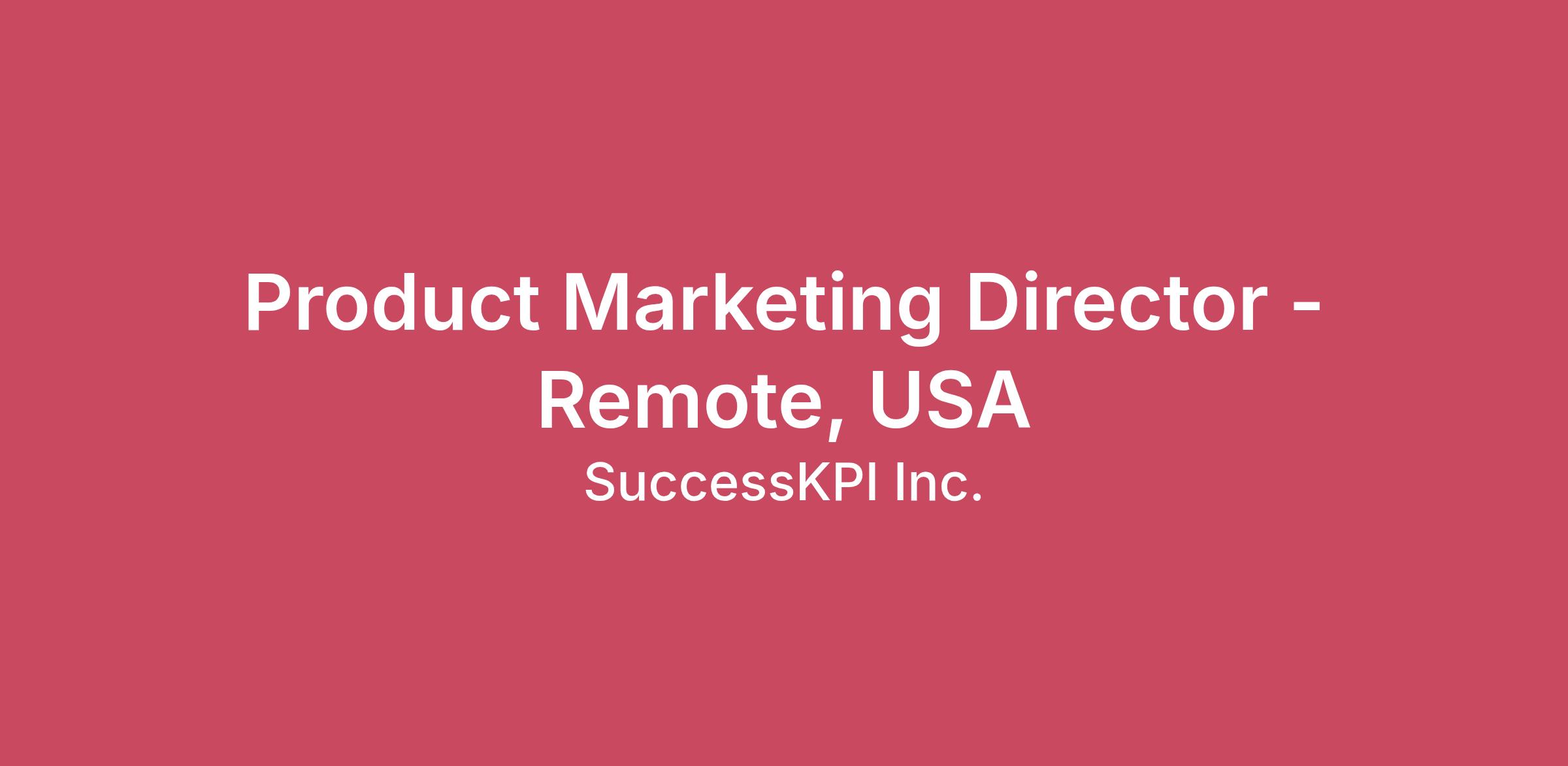 SuccessKPI is a global company with a deep focus on achieving success through a belief that we are stronger together. We are proud of the culture we have created and weave our values into everything we do. Our employees are always encouraged to be innovators and builders at heart that help shape the future of our organization. We believe that offering competitive benefits and perks is nice but helping our employees thrive in today’s ever-changing world is even better! We put YOU first, offering employees an opportunity to make their mark here while creating and nurturing a strong work-life balance. We offer a flexible work environment as a fully remote team. If this sounds like a place you’d be proud to work at, what are you waiting for, apply today!Product Marketing Director Department: Marketing Report to: CMO The Product Marketing Director (PMD) leads SuccessKPI’s global product marketing strategy, serving as the connective tissue between product, sales, marketing, and customer insight. This role defines and drives positioning, messaging, competitive intelligence, and go-to-market strategy to accelerate category leadership, demand generation, and revenue growth. As both a strategist and hands-on contributor, the PMD translates product innovation into compelling market narratives, ensuring our solutions are differentiated, customer-centric, and commercially impactful. This role reports to the CMO and serves as a key market-facing evangelist for SuccessKPI. This role is an individual contributor with influence. Ideal for someone who is in a Senior Manager role and ready to move into a Director role. Job Location: Remote Work, USA. Candidates must reside in one of the following states: CA, CO, FL, GA, IL, ID, IN, MA, MD, MO, MI, NE, NC, NJ, PA, TN, TX, VA Why work for SuccessKPI: Opportunity to work for an organization that prides itself on offering a diverse and dynamic culture where employees are proud to work Opportunity to work for a fast-growth global company in the rapidly growing analytics space Opportunity for career development and growth opportunities as we grow and scale Opportunity to build industry relationships and work alongside seasoned industry experts Opportunity to work with our leadership team to strategize, collaborate, and solve customer challenges every day - YOU HAVE A VOICE AT SUCCESSKPI! What You’ll Do: Product Marketing & Messaging Strategy Strategy – Drive product marketing direction for SuccessKPI, collaborating closely with Product, Sales and other marketing functions including digital marketing, event marketing, and external consultants. Product Roadmap – Partner with the Product organization to help shape product strategy and roadmap priorities based on competitive intelligence and market insights that create\ current and future market opportunities. Market Opportunities – Develop a deep understanding of market trends, customer requirements, usage and buying behaviors, and the partner ecosystem to identify opportunities and drive demand for SuccessKPI solutions. Analyst Relations – Lead SuccessKPI’s analyst relations strategy and interactions with key industry analyst firms. Category Leadership – Develop market-leading initiatives that differentiate SuccessKPI globally through strategic partnerships (local and global), innovative campaigns, and an insight-led marketing approach. Knowledge Creation – Educate the market on SuccessKPI’s technical value through demos, white-papers, workshops, presentations, technical blogs, and other thought leadership assets that drive engagement and visibility. Sales Development – Develop product marketing strategies for new prospects and existing customers Organizational Enablement Product and Go-To-Market Approach – Support and refine go-to-market initiatives in partnership with GTM teams by developing collateral, including case studies, web content, solution briefs, presentations, data sheets, sales playbooks, and whitepapers for global use. Sales Enablement – Assist sales with target profiles, training programs, and sales tool kits. Analyze win/loss insights and syndicate best practices across the organization. Insight-Led Marketing – Develop and operationalize an insight-led marketing framework that informs content and campaign strategy across the funnel from top-of-funnel engagement through to bottom-of-funnel conversion. Event Enablement – Partner with events and tradeshows to shape messaging frameworks, keynote/panel execution, and supporting content to maximize event ROI and strengthen market positioning. Engagement Activations – Support monthly webinars, case studies, and industry/product roundtables designed to drive engagement, education, and pipeline growth. Customer Insights and Research Customer Insight – Gather and synthesize insights from customers and prospects to inform product roadmap prioritization, gap analysis, and differentiation strategy. Customer Use Cases – Develop industry and solution-focused use cases, demo scenarios, and sandbox environments that showcase platform capabilities and reporting outcomes within a clear problem-solution framework. Competitive Intelligence – Build competitive intelligence briefs and battlecards to guide sales strategy and inform marketing messaging. Third-Party Market Research – Establish a recurring cadence of internal and external communications informed by industry research publications to drive organizational knowledge, sales enablement, and product innovation. Customer Segmentation – Use customer, partner, and competitive research to influence product strategy and messaging. Develop customer personas and segmentation frameworks to support targeted product launches and campaign execution. What You’ll Bring: 8+ years of experience in product marketing and related marketing functions within the software industry, preferably within enterprise SAAS. 5+ years working in the contact center industry is required Ability to u