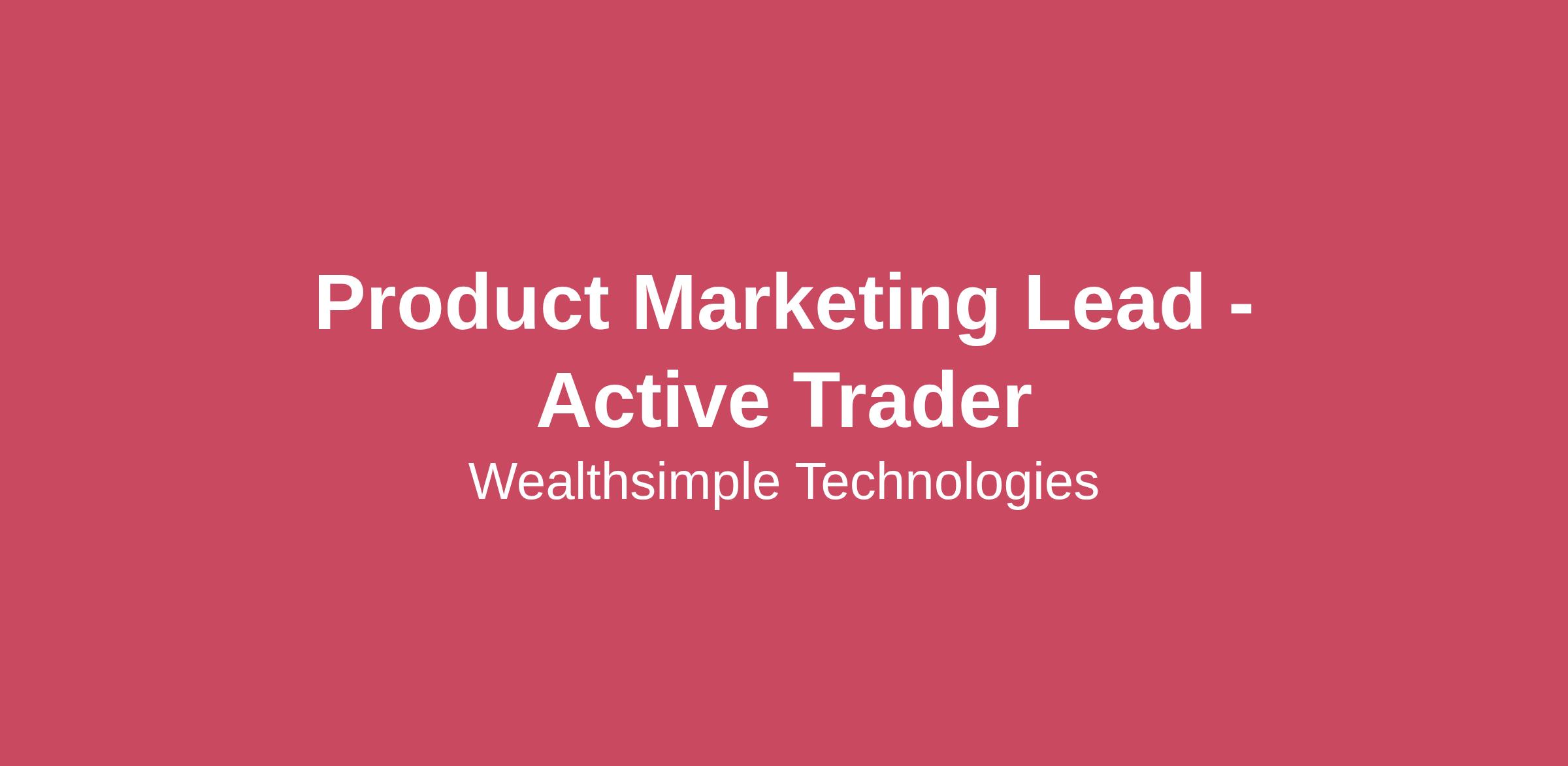 Build something people loveWealthsimple is on a mission to help everyone achieve financial freedom by reimagining what it means to manage your money. Using smart technology, we take financial services that are often confusing and expensive and make them transparent and low-cost for everyone. We’re the largest fintech company in Canada, with 3+ million users who trust us with more than $100 billion in assets. And we’re just getting started.We’re looking for someone who thinks big, sweats the small stuff and keeps things simple. You’ll join a high-bar, fast-paced team where people are trusted to own their work, communicate openly, and ship things that improve our clients’ lives. Collaboration, humility, and an obsession over quality are how we get stuff done.Be a part of our Canadian success story and help shape the financial future of millions. Read our Culture Manual and learn more about how we work.We are hiring a Product Marketing Lead to support our Active Trader business. To succeed in this role, you need to be an active trader yourself, with a deep understanding of markets, strategies, and what motivates this highly engaged segment. Your lived experience will be essential in shaping GTM strategies, campaigns, and content that resonate authentically with traders in 2026 and beyond.About the RoleWe are looking for a strategic and client-obsessed Product Marketing Lead to help grow our Active Trader business. In this role, you'll turn product innovations into compelling narratives, campaigns, and go-to-market strategies that resonate with traders who expect speed, transparency, and advanced capabilities.You’ll be responsible for deeply understanding our clients, market trends, and competitive landscape—and translating those insights into positioning, messaging, and campaigns that drive engagement, adoption, and trust. Working closely with the Product Marketing leadership and cross-functional teams and their leaders (Product, Growth, Sales, Brand, UX, Data Science, and more), you’ll lead the success of major product launches and trader-focused initiatives end-to-end.You'll thrive in this role if you’re excited to manage executional details while thinking strategically about scaling products, challenging assumptions, and driving long-term impact in the active trading segment.In this role you'll have the opportunity to:Drive top-of-funnel growth for Active Traders: Collaborate closely with Sales and Growth in the Active Trader Growth Pod to design and scale acquisition strategies that increase qualified trader leads. You’ll help shape incentive frameworks, influence paid and partnership strategies, and connect GTM narratives to measurable growth. While reporting into PMM leadership, this role includes a dotted-line relationship to Sales leadership to maximize impact and exposure.Lead Go-To-Market initiatives for trader products: Own GTM execution, ensuring messaging is on point, campaigns run smoothly across stakeholders, and results are tracked and analyzed.Drive trader insights: Use your personal trading experience, client research, and internal data to uncover growth opportunities, advocate for trader needs and product roadmap priorities and champion marketing strategies that best resonate with this segment.Shape positioning & content: Translate complex trading products into clear, compelling narratives for traders, helping the business stand out in a competitive market.Run experiments and test ideas: Design and execute small-scale experiments to explore product or marketing optimizations, using results to influence bigger bets.Stay ahead of market trends: Monitor the trading ecosystem, competitor offerings, regulations, and emerging opportunities to ensure Wealthsimple is at the forefront of innovation.Leverage AI to supercharge marketing: Use AI tools to extract insights, streamline processes, and enhance the impact and reach of campaigns.What you’ll bring:8+ years of marketing experience in hyper-growth technology organizationsActive trading experience: You actively trade stocks, options, crypto, or other instruments and understand the behaviors, tools, and motivations of high-frequency tradersProven track record of developing go-to-market plans, shaping positioning, and turning strategy into live campaignsStrong cross-functional collaboration skills: you have high conviction in your ideas that span product and marketing and you bring out the best in others and ensure coordinated, high-quality deliveryStrong familiarity with SQL to analyze datasets, evaluate marketing campaign performance, inform go-to-market decisions and translate insights into actionFluency with AI tools that boost productivity and inform strategySharp attention to detail, ensuring all materials are accurate, aligned, and trader-focusedBias toward action: you thrive in fast-paced environments and are comfortable working with ambiguityGrowth mindset and challenger mentality: you seek opportunities to improve business outcomes, marketing approaches, and your own skillsWhy Wealthsimple? Top-tier health benefits and life insurance Long-term group savings with employer match using our Wealthsimple for Business platform 20 vacation days + 4 wellness days per year, and unlimited sick and mental health days✈ 90 days away program: Employees can work outside of Canada for up to 90 days per calendar year A wide variety of peer and company-led Employee Resources Groups (e.g., Rainbow, Women of Wealthsimple, Black @ WS) We’re a remote first team with over 1,500 employees across North America - and one of the best things about working here is the people. You’ll be collaborating with incredibly talented, curious, and driven teammates who care deeply about doing great work.Technology & Innovation at WealthsimpleWe believe the future belongs to those who innovate boldly. At Wealthsimple, every team member is expected to lean into new technologies, including AI, and tooling to rethink how we work, solve