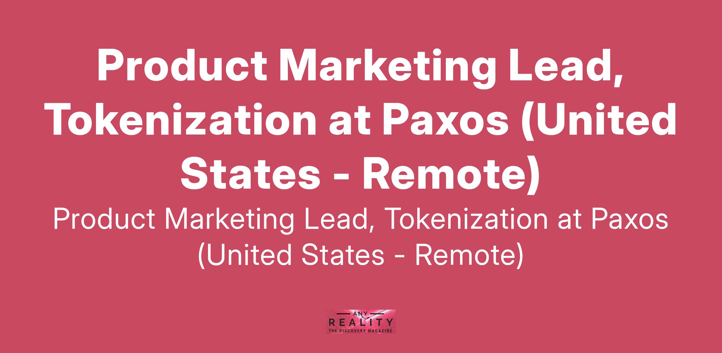 Product Marketing Lead, Tokenization at Paxos (United States - Remote)