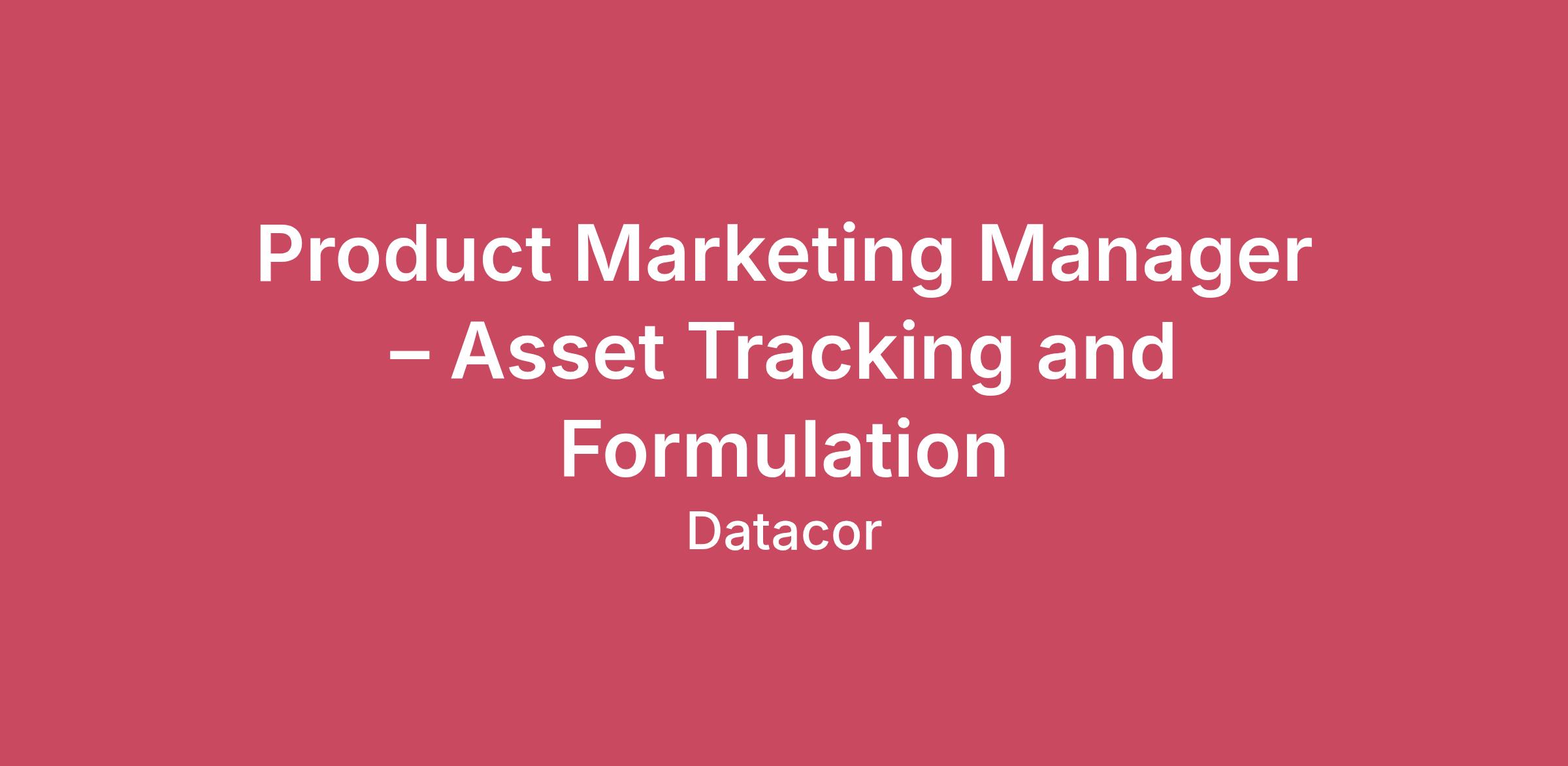 Product Marketing Manager – Asset Tracking and Formulation