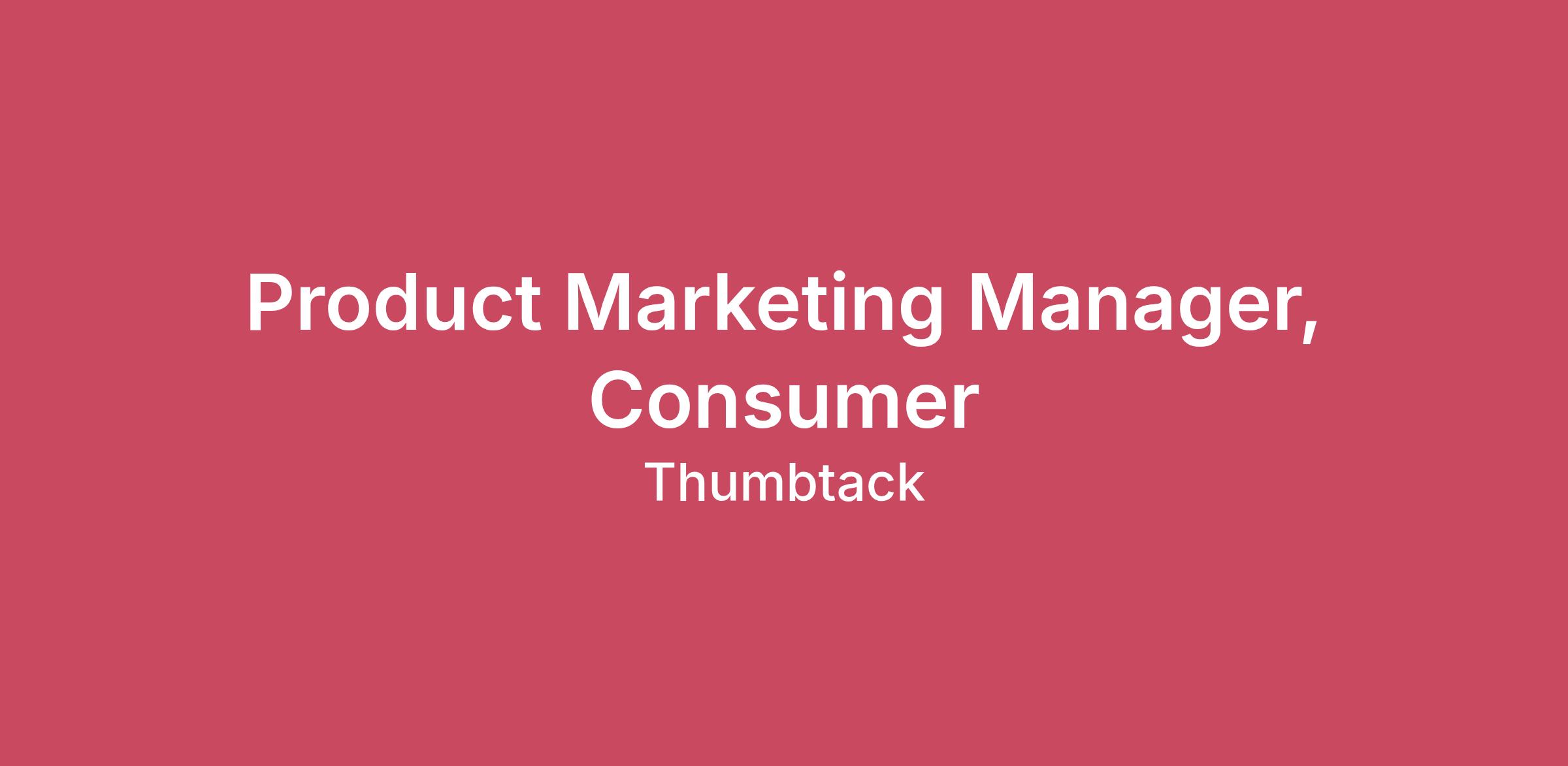 Thumbtack helps millions of people confidently care for their homes. Thumbtack is the one app you need to take care of and improve your home — from personalized guidance to AI tools and a best-in-class hiring experience. Every day in every county of the U.S., people turn to Thumbtack to complete urgent repairs, seasonal maintenance and bigger improvements. We help homeowners know which projects to do, when to do them and who to hire from our growing community of 300,000 local service businesses. If making an impact inspires you, join us. Imagine what we’ll build together.About the Product Marketing Manager Team Product Marketing’s goal is to make Thumbtack known, trusted, and loved by influencing the product roadmap, developing impactful positioning, and launching multi-channel campaigns. We shape our product to be market-leading and deeply aligned with the needs of both pros and customers. About the Role Thumbtack is reimagining how consumers complete their home projects from the moment they identify an issue to hiring the right pro, and AI is at the center of that transformation. As a Product Marketing Manager focused on the consumer hiring experience, you will play a pivotal role in bringing AI-powered products to market and driving adoption to move homeowners from uncertainty to confidence. In this role, you’ll be a strategic thought partner to Product, Design, Research and Data Science, building clear problem framing, grounding product decisions in market insights, and developing differentiated positioning and messaging in the market. You’ll work to deeply understand our homeowner audience including how they think about home projects, their motivations, and where they get stuck. And you’ll help optimize our new customer experience, reducing friction so more customers feel ready to start a project. You'll also partner with our growth team to identify new product experiences that drive demand, repeat usage, and long-term consumer engagement. What you'll do Become the expert on our homeowners, competitors and AI trends shaping the consumer hiring landscape to identify opportunities and areas of differentiation, using these insights to shape product strategy and define our right to win. Own the end-to-end GTM strategy for our consumer AI-powered hiring experiences from insight generation and market assessment, through positioning and messaging, launch strategy, and performance measurement. Drive product-market fit and adoption for these experiences, identifying the ideal customer and use cases, clearly articulating the value that these products deliver to homeowners. Collaborate with Product, Design, and Research to determine how we can reduce friction and drop off in the search experience to get more customers to start a project. Build consistent internal and external narratives on our hiring experience in close partnership with Brand, PR, Growth and Lifecycle Marketing. Partner with the growth team to identify product opportunities that generate new demand and increase repeat usage among existing customers. In order to be successful, you must bring 4+ years of product marketing experience, with a strong foundation in consumer-facing products. Demonstrated ability to develop sharp, insight-driven positioning and messaging for products that are still finding product market fit. Experience working with Brand, Growth, Lifecycle and PR teams to align on a unified narrative. Strong 0-to-1 GTM expertise, with experience taking products from insight generation through launch strategy and performance measurement. Excellent collaboration and communication skills, with the ability to influence and drive alignment with cross-functional partners. Comfortable operating with ambiguity in a fast-moving environment, bringing structure and a strong user-centric mindset to complex, evolving problems. Expected salary ranges For candidates living in Ontario and British Columbia, the expected salary range for the role is currently $108,800.00 - $140,800.00. Actual offered salaries will vary and will be based on various factors, such as calibrated job level, qualifications, skills, competencies, and proficiency for the role. Note: Thumbtack uses AI tools to support our resume screening process. However, our Recruiting team’s expertise and judgment guide hiring decisions. #LI-RemoteThumbtack embraces diversity. We are proud to be an equal opportunity workplace and do not discriminate on the basis of sex, race, color, age, pregnancy, sexual orientation, gender identity or expression, religion, national origin, ancestry, citizenship, marital status, military or veteran status, genetic information, disability status, or any other characteristic protected by federal, provincial, state, or local law. We also will consider for employment qualified applicants with arrest and conviction records, consistent with applicable law. Thumbtack is committed to working with and providing reasonable accommodation to individuals with disabilities. If you would like to request a reasonable accommodation for a medical condition or disability during any part of the application process, please contact: recruitingops@thumbtack.com. If you are a California resident, please review information regarding your rights under California privacy laws contained in Thumbtack’s Privacy policy available at https://www.thumbtack.com/privacy/. We put as much craftsmanship into candidate safety as we do into the hiring experience itself. While scammers may try to impersonate our team, we’ll never ask you for money, banking info, or SSNs during hiring. Check out our blueprint on how to spot the fakes.