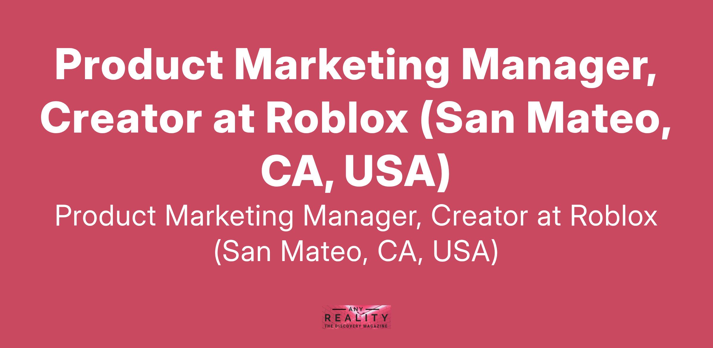 Product Marketing Manager, Creator at Roblox (San Mateo, CA, USA)