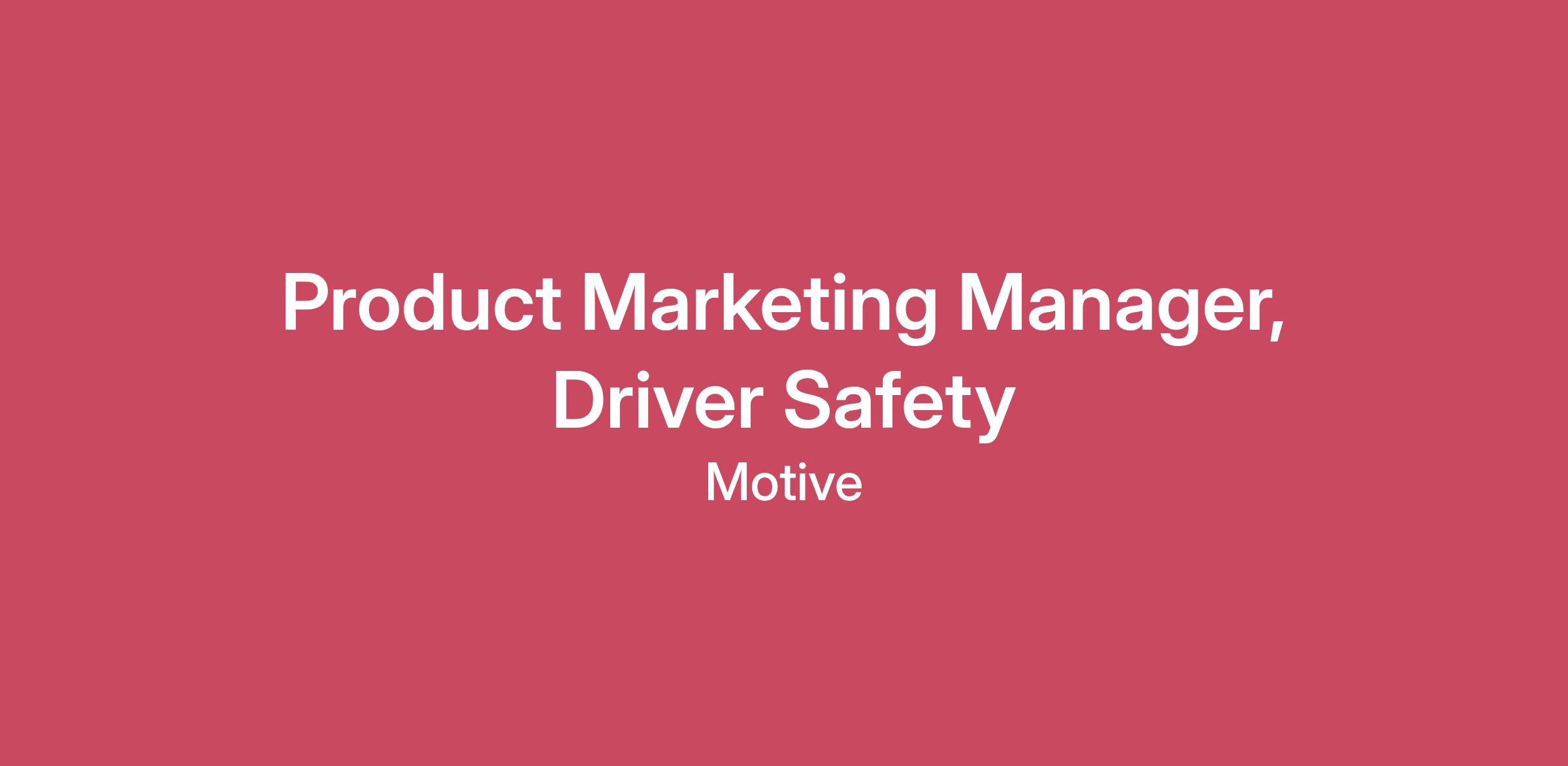Who we are: Motive empowers the people who run physical operations with tools to make their work safer, more productive, and more profitable. For the first time ever, safety, operations and finance teams can manage their drivers, vehicles, equipment, and fleet related spend in a single system. Combined with industry leading AI, the Motive platform gives you complete visibility and control, and significantly reduces manual workloads by automating and simplifying tasks. Motive serves nearly 100,000 customers – from Fortune 500 enterprises to small businesses – across a wide range of industries, including transportation and logistics, construction, energy, field service, manufacturing, agriculture, food and beverage, retail, and the public sector. Visit gomotive.com to learn more. About the Role: As the Product Marketing Manager for Driver Safety at Motive, you will support the planning and execution of go-to-market initiatives for our AI-powered safety products. You will help bring new features to market, build competitive insights, and equip Sales with tools that clearly communicate Motive’s safety value. This role works closely with product management, sales, enablement, creative, and other cross-functional partners to drive awareness, adoption, and customer value. What You'll Do: Support end-to-end product launches, including GTM planning, messaging updates, training materials, and ongoing readiness. Conduct customer research and track post-launch KPIs to understand feature performance, refine messaging, and identify opportunities for improvement. Develop safety marketing assets such as slides, one-pagers, demo flows, customer stories, and feature deep dives. Maintain competitive intelligence for key safety and telematics competitors, translating insights into clear guidance for Sales, Product, and leadership. Contribute to demo tours by building talk tracks, demos, and supporting materials that showcase Motive’s safety capabilities. Partner with Product Managers, Sales Enablement, and marketing teams to align on priorities, inform roadmap discussions, and ensure GTM execution is coordinated across teams. What We're Looking For: 4+ years of experience in product marketing or B2B marketing, preferably within tech or SaaS, with a strong ability to translate technical concepts into simple customer benefits. Excellent attention to detail, strong organization, and the ability to manage multiple projects with tight deadlines. Comfort working through ambiguity and creating structure in fast-moving environments. Strong project management skills, including cross-functional coordination and clear communication. Ability to conduct research, synthesize insights, and support competitive and market analysis. Clear, concise communicator with strong storytelling and presentation skills. Pay TransparencyYour compensation may be based on several factors, including education, work experience, and certifications. For certain roles, total compensation may include restricted stock units. Motive offers benefits including health, pharmacy, optical and dental care benefits, paid time off, sick time off, short term and long term disability coverage, life insurance as well as 401k contribution (all benefits are subject to eligibility requirements). Learn more about our benefits by visiting Motive Perks & Benefits.The compensation range for this position will depend on where you reside. For this role, the compensation range is:United States$88,000—$134,000 USDCreating a diverse and inclusive workplace is one of Motive's core values. We are an equal opportunity employer and welcome people of different backgrounds, experiences, abilities and perspectives. Please review our Candidate Privacy Notice here. UK Candidate Privacy Notice here. The applicant must be authorized to receive and access those commodities and technologies controlled under U.S. Export Administration Regulations. It is Motive's policy to require that employees be authorized to receive access to Motive products and technology. #LI-Remote