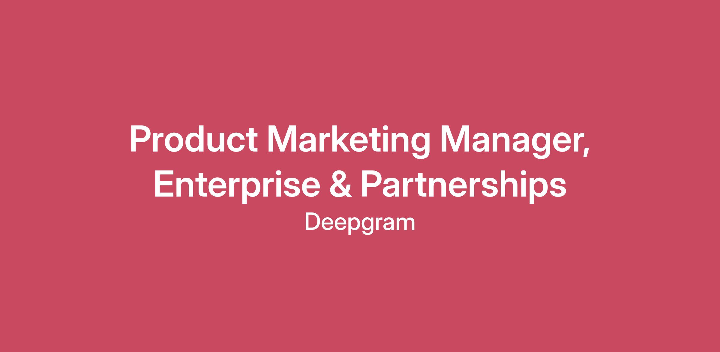 Company OverviewDeepgram is the leading voice AI platform for developers building speech-to-text (STT), text-to-speech (TTS) and full speech-to-speech (STS) offerings. 200,000+ developers build with Deepgram’s voice-native foundational models – accessed through APIs or as self-managed software – due to our unmatched accuracy, latency and pricing. Customers include software companies building voice products, co-sell partners working with large enterprises, and enterprises solving internal voice AI use cases. The company ended 2024 cash-flow positive with 400+ enterprise customers, 3.3x annual usage growth across the past 4 years, over 50,000 years of audio processed and over 1 trillion words transcribed. There is no organization in the world that understands voice better than Deepgram.Company Operating RhythmAt Deepgram, we expect an AI-first mindset—AI use and comfort aren’t optional, they’re core to how we operate, innovate, and measure performance.Every team member who works at Deepgram is expected to actively use and experiment with advanced AI tools, and even build your own into your everyday work. We measure how effectively AI is applied to deliver results, and consistent, creative use of the latest AI capabilities is key to success here. Candidates should be comfortable adopting new models and modes quickly, integrating AI into their workflows, and continuously pushing the boundaries of what these technologies can do.Additionally, we move at the pace of AI. Change is rapid, and you can expect your day-to-day work to evolve just as quickly. This may not be the right role if you’re not excited to experiment, adapt, think on your feet, and learn constantly, or if you’re seeking something highly prescriptive with a traditional 9-to-5.Opportunity:As a Product Marketing Manager, Enterprise & Partnerships at Deepgram, you will play a pivotal role in building and scaling our partner/enterprise marketing initiatives with leading cloud providers and technology companies. You'll execute go-to-market programs that enable our partnerships to scale and accelerate enterprise adoption of Deepgram's voice AI platform.In this role, you'll translate technical voice AI capabilities into compelling joint value propositions, and build scalable enablement programs that empower our partners to successfully position and sell Deepgram. You'll also support broader product marketing initiatives across solutions messaging and customer advocacy as priorities evolve.What You’ll DoExecute co-marketing programs with our cloud and technology partners, including joint campaigns, content creation, and MDF-funded activitiesCreate partner enablement materials (pitch decks, solution briefs, demo scripts, case studies) that help partners effectively communicate Deepgram's voice AI value proposition to enterprise buyersExecute integrated campaigns with partners targeting enterprise decision-makers, creating compelling narratives around AI transformation and voice AI business valueCreate and maintain a partner marketing content library and resource center, ensuring partners have easy access to the latest materials, messaging, and technical documentationTrack and report on partner marketing performance, including partner-sourced pipeline, influenced revenue, campaign ROI, and program effectivenessWork closely with the partner team to support their work with scalable processes, templates, and playbooks for partner marketing that can be replicated as the partner ecosystem growsYou’ll Love This Role If YouAre eager to learn partner/alliance marketing and want to build foundational expertise in a high-growth areaThrive in a "build it from scratch" environment and enjoy creating programs where infrastructure doesn't yet existExcel at execution; you can take strategic direction and run with it independentlyAre highly organized and comfortable managing multiple priorities and workstreams, working cross-functionally and building relationships across teamsAre energized by seeing the direct impact of your work on pipeline, customer success, and partner engagementHave a "get it done" mentality and aren't afraid to jump in wherever needed to ensure program successAre excited about AI/voice technology and enabling partners to build innovative applicationsIt’s Important To Us That You Have2-4 years of marketing experience in B2B tech, SaaS, or enterprise software (product marketing, demand gen, content marketing, or partner marketing backgrounds all welcome)Excellent written and verbal communication skills - you can craft clear, compelling content for both technical and business audiences and have a portfolio of content to prove itStrong project management and organizational skills with ability to manage multiple workstreams independentlySelf-starter mentality with comfort operating in ambiguity and figuring things out as you goCollaborative mindset and experience working cross-functionally with sales, product, marketing, or partner teamsCuriosity and willingness to learn new areas quicklyIt Would Be Great if You HadAny exposure to partner/alliance/channel marketing (AWS Partner Network, Azure, GCP, or similar cloud ecosystems)Experience in AI/ML, developer tools, API-first products, or enterprise softwareBackground creating enablement materials, sales content, or customer-facing collateralFamiliarity with marketing automation platforms, CRM systems (HubSpot, Salesforce), or analytics toolsExperience supporting or working with senior stakeholders in a fast-paced environmentTrack record in high-growth startup environments (AI focused a plus)Benefits & PerksHolistic healthMedical, dental, vision benefitsAnnual wellness stipendMental health supportLife, STD, LTD Income Insurance PlansWork/life blendUnlimited PTOGenerous paid parental leaveFlexible schedule12 Paid US company holidaysQuarterly personal productivity stipendOne-time stipend for home office upgrades401(k) plan with company matchTax Savings ProgramsContinuou