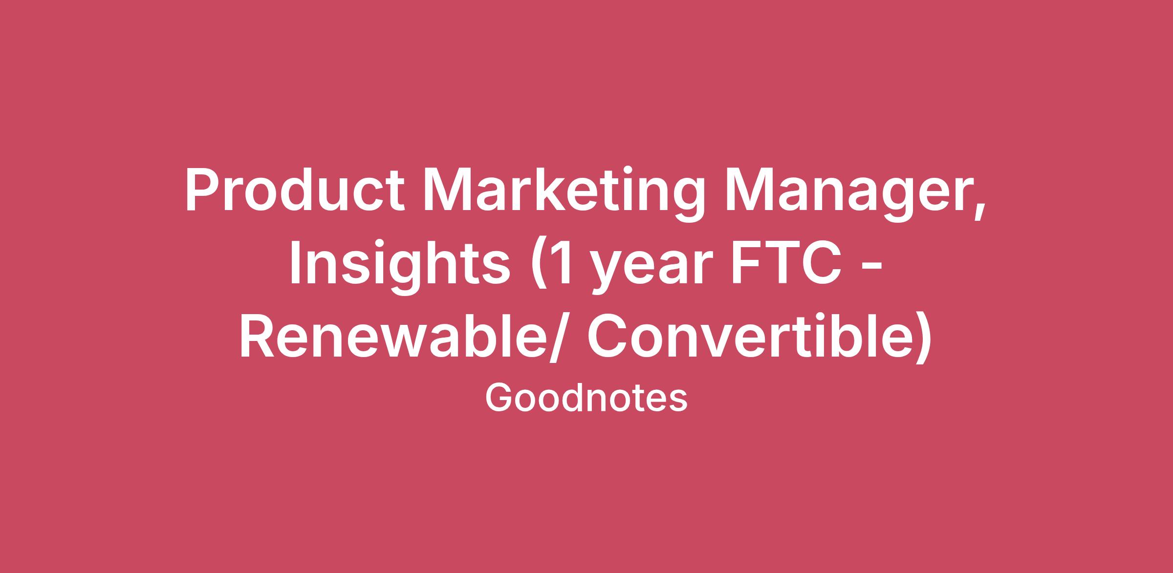 At Goodnotes, we believe that every individual holds untapped potential waiting to be unleashed. By reimagining the way we interact with information, we’re merging human creativity with the breakthrough capabilities of AI. Our renewed vision and mission drive us to create the best medium for human and AI collaboration, empowering users to explore new dimensions of productivity, creativity, and learning. Join us on this journey as we transform digital note-taking into an inspiring and innovative experience.Our Values: Dream big —Be visionary, strategic, and open to innovation Build great things —Work in service of our users, always improving and pushing higher Operate as an owner —Take responsibility with bold decision-making and bias for action Win like a sports team —Be trusting and collaborative while empowering others Learn and grow fast —Never stop learning and iterate fast Share our passion —Share ideas and practice enthusiasm and joy Be user obsessed —Empathetic, inquisitive, practical About the Role As a Product Marketing Manager, you will act as the "CEO" of a specific user segment. You will own the comprehensive understanding of this audience—uncovering their workflows, motivations, and pain points through rigorous research.You won't just be a marketer; you will be a strategist and a system-builder. You will translate insights into "Source of Truth" personas, architect systematic Go-to-Market (GTM) plans for new features (including AI), and enable the entire company to build with your user in mind. This is the role for you if you’re excited to work on: Unlocking Truths through Rigor: You don’t guess; you validate. You are excited to lead a systematic research agenda—conducting deep-dive interviews, running surveys, and analyzing behavioral data to build data-backed personas and knowledge bases that serve as the internal source of truth. Architecting the GTM "Machine": You are systematic and process-obsessed. You don’t just execute launches; you build the frameworks, trackers, and retro processes that allow us to launch features to different segments without friction. You bring order to chaos. Strategic Positioning & Narrative: You love the puzzle of differentiation. You can map the competitive landscape, identify our "wedge" in the market, and craft messaging that clearly articulates why Goodnotes is the superior choice for your specific audience. Hypothesis-Driven Marketing: You treat marketing as a science. You are eager to set up experiments, pilot new messaging, and use data to iterate on our strategy before scaling it to the wider market. Internal Enablement: You want to be the knowledge hub. You are excited to create the "Market Playbook"—the organized libraries of personas, competitor battle cards, and messaging guides—that empower our Product, Sales, and Exec teams to make smarter decisions. The skills you will need to be successful: 3-6 years of marketing/product marketing experience, ideally in B2C (Consumer Apps), SaaS, or AI Experience marketing to multiple user segments: You understand how to craft positioning that resonates with both students and professionals, and can navigate the nuances of each audience's needs, pain points, and decision-making processes. Proven experience launching AI or ML-driven products: You understand the nuances of marketing AI (trust, privacy, iteration) and can navigate the rapid pace of this sector. Research & Insights Excellence: You have a strong track record of conducting user research, synthesizing competitive intelligence, and translating insights into compelling positioning and GTM strategies. Data Fluency: You are comfortable working with data to extract actionable insights, identify trends and patterns, and recommend strategic next steps based on your analysis. The interview process: An introductory call with someone from our talent acquisition team. They want to hear more about your background, what you are looking for, and why you’d like to join Goodnotes A role-specific call with someone from the product Marketing team to discuss your background and skillset for this role more in detail A call with your hiring manager. This is the person who will be managing you day to day, working on your growth and development with you as well as support you throughout your career at Goodnotes. This call will also include a live assessment. A meet the team call with 2 or 3 GoodPeople you’d be working closely with at Goodnotes AI Literacy Interview What’s in it for you: Budget for things like noise-cancelling headphones, setting up your home office, personal development, professional training, and health & wellness Sponsored visits to our Hong Kong or London office every 2 years Company-wide annual offsite Flexible working hours and location Medical insurance for you and your dependents Note: Employment is contingent upon successful completion of background checks, including verification of employment, education, and criminal records. By submitting your application, you acknowledge that you have read and understood our Candidate Privacy Notice, which provides important information about the data we collect during the application process. You can find it here.