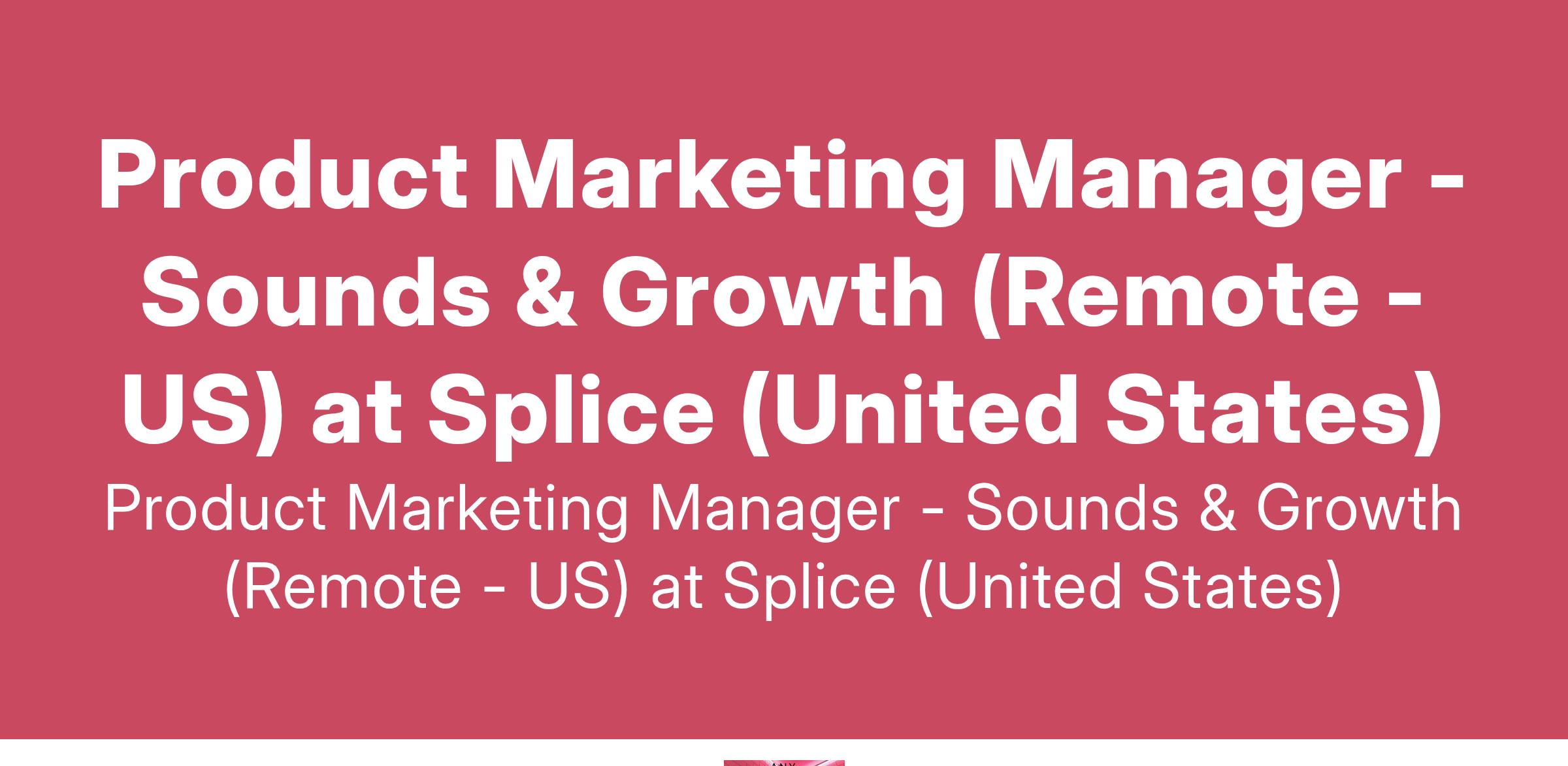 Product Marketing Manager - Sounds & Growth (Remote - US) at Splice (United States)
