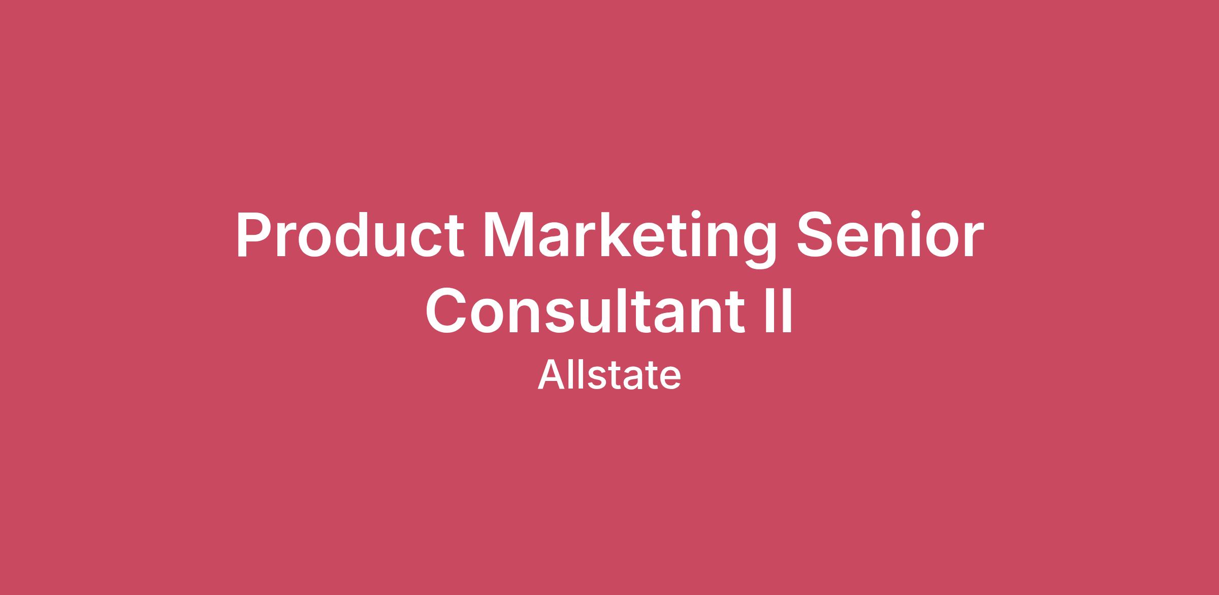 At Allstate, great things happen when our people work together to protect families and their belongings from life’s uncertainties. And for more than 90 years, our innovative drive has kept us a step ahead of our customers’ evolving needs. From advocating for seat belts, air bags and graduated driving laws, to being an industry leader in pricing sophistication, telematics, and, more recently, device and identity protection. Job DescriptionThe Product Marketing Sr Consultant II supports planning and creative development of marketing programs and leads/manages day-to-day execution of marketing tactics that drive profitable growth and retention for Allstate. This position consults with others in Consumer Marketing, Marketing Analytics, Research & Administration, Digital Transformation, Innovation or business areas to gain input to develop, execute and measure the marketing plan. The Sr Consultant must possess a variety of competencies including strong attention-to-detail, advanced communication skills, strong copyediting and ability to judge creative and provide constructive feedback to both internal and external partners. This position will support specialty line vehicle products.Key Responsibilities• Work with solid level of independence on new or unfamiliar projects• Manage required day-to-day tasks, including status report and timeline management, meeting coordination, legal and key stakeholder approvals, and maintaining centralized files for reference and compliance.• Manage the planning, creative development and implementation of integrated marketing communications to support various programs and strategies, offering solutions and recommendations to manager and other contributing team members• Initiate ideas and actions on cross-functional teams• Contribute to integration across marketing teams and other departments, building relationships with internal and external business partners and resources• Assist with the development of presentations, program overviews, recaps, and other materials for internal meetings and presentations; present work internally to marketing leadership and other business partners• Manage program budgets and provide monthly and quarterly budget forecasts to internal finance teamExperience• 3 or more years of experience (Preferred)Supervisory Responsibilities• This job does not have supervisory duties.SkillsCollaboration, Insurance Product Knowledge, Integrated Marketing, Marketing Campaign Development, Marketing Communications (MarCom), Marketing Planning, Marketing Strategies, Product MarketingCompensationCompensation offered for this role is 70,100.00 - 121,475.00 annually and is based on experience and qualifications.The candidate(s) offered this position will be required to submit to a background investigation.Joining our team isn’t just a job — it’s an opportunity. One that takes your skills and pushes them to the next level. One that encourages you to challenge the status quo. One where you can shape the future of protection while supporting causes that mean the most to you. Joining our team means being part of something bigger – a winning team making a meaningful impact.Allstate generally does not sponsor individuals for employment-based visas for this position.Effective July 1, 2014, under Indiana House Enrolled Act (HEA) 1242, it is against public policy of the State of Indiana and a discriminatory practice for an employer to discriminate against a prospective employee on the basis of status as a veteran by refusing to employ an applicant on the basis that they are a veteran of the armed forces of the United States, a member of the Indiana National Guard or a member of a reserve component.For jobs in San Francisco, please click “here” for information regarding the San Francisco Fair Chance Ordinance.For jobs in Los Angeles, please click “here” for information regarding the Los Angeles Fair Chance Initiative for Hiring Ordinance.To view the “EEO Know Your Rights” poster click “here”. This poster provides information concerning the laws and procedures for filing complaints of violations of the laws with the Office of Federal Contract Compliance Programs.To view the FMLA poster, click “here”. This poster summarizing the major provisions of the Family and Medical Leave Act (FMLA) and telling employees how to file a complaint.It is the Company’s policy to employ the best qualified individuals available for all jobs. Therefore, any discriminatory action taken on account of an employee’s ancestry, age, color, disability, genetic information, gender, gender identity, gender expression, sexual and reproductive health decision, marital status, medical condition, military or veteran status, national origin, race (include traits historically associated with race, including, but not limited to, hair texture and protective hairstyles), religion (including religious dress), sex, or sexual orientation that adversely affects an employee's terms or conditions of employment is prohibited. This policy applies to all aspects of the employment relationship, including, but not limited to, hiring, training, salary administration, promotion, job assignment, benefits, discipline, and separation of employment.