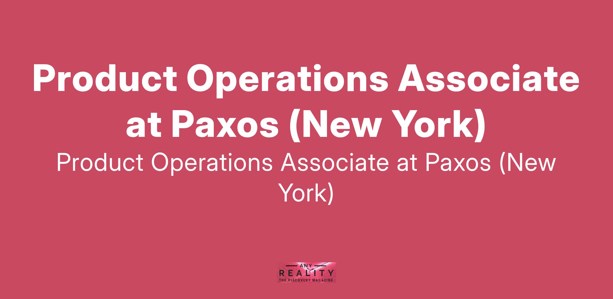 Product Operations Associate at Paxos (New York)