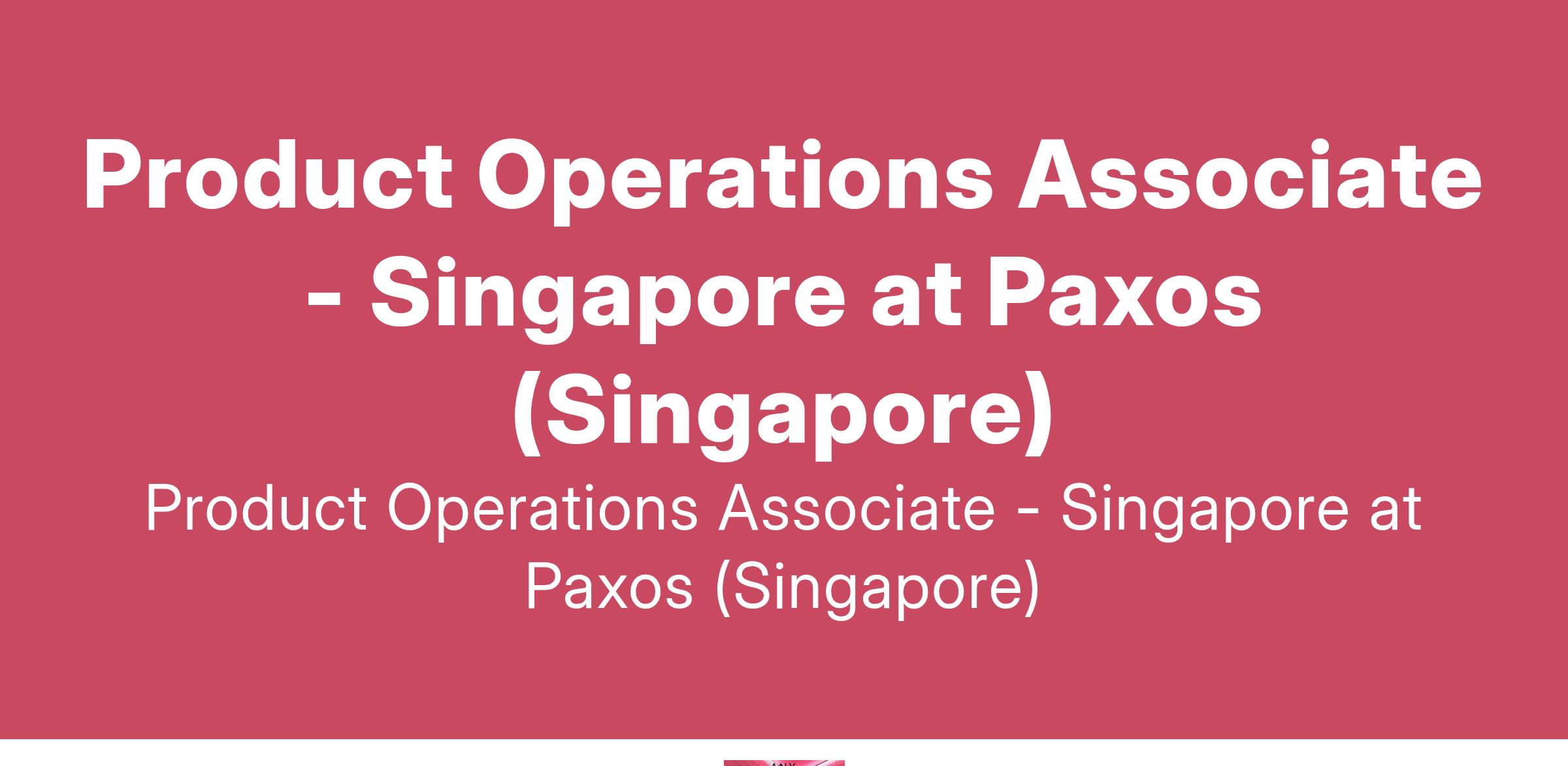Product Operations Associate - Singapore at Paxos (Singapore)