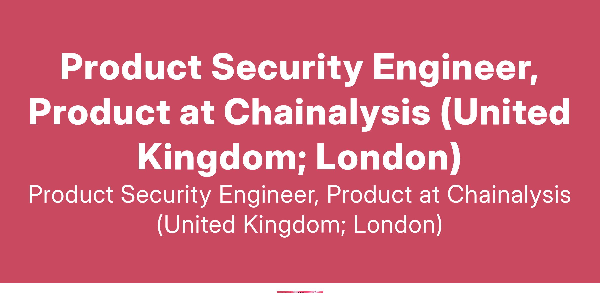 Product Security Engineer, Product at Chainalysis (United Kingdom; London)