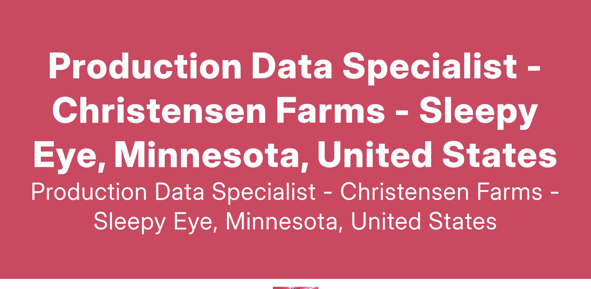 Production Data Specialist - Christensen Farms - Sleepy Eye, Minnesota, United States