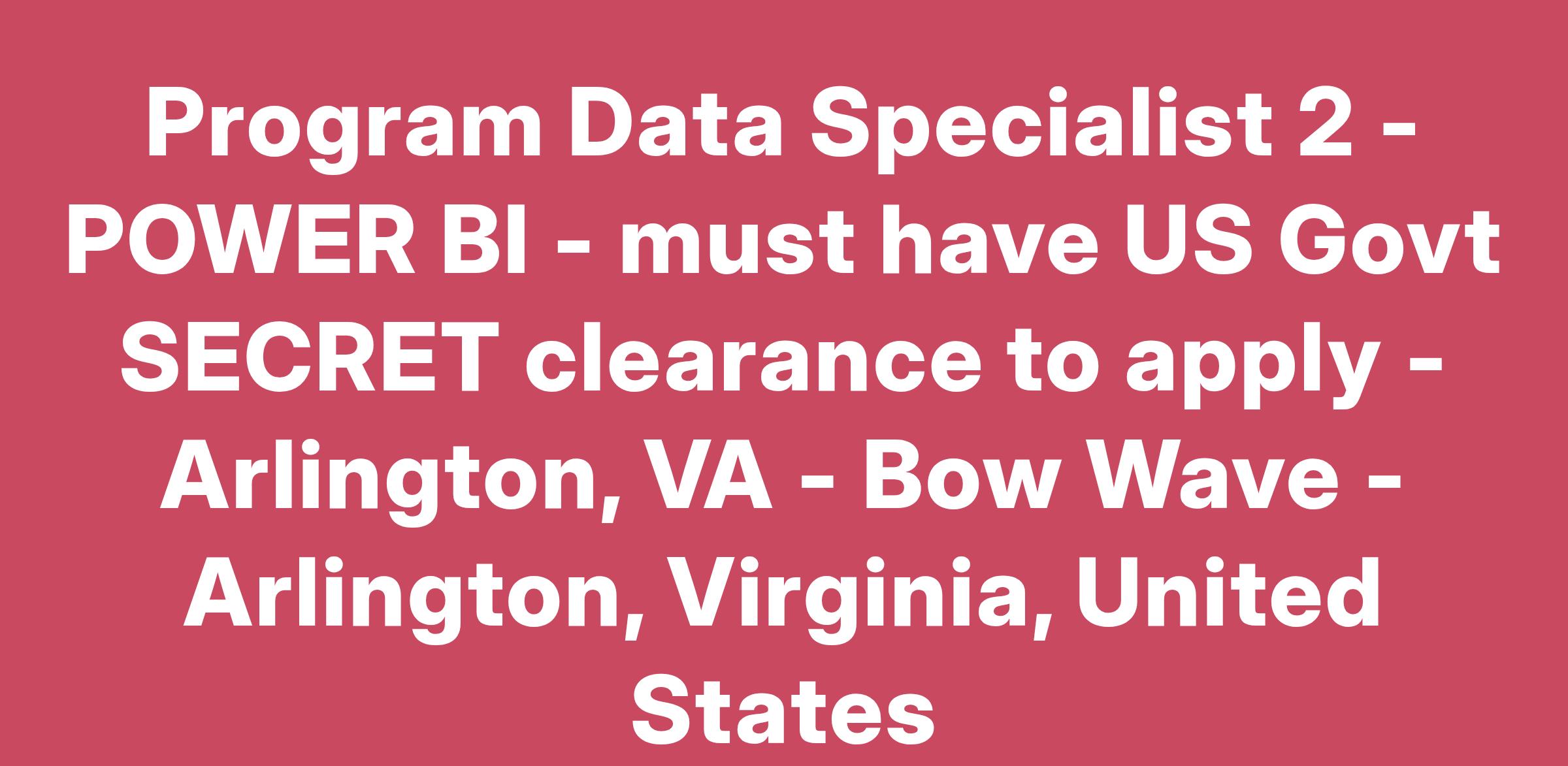 Program Data Specialist 2 - POWER BI - must have US Govt SECRET clearance to apply - Arlington, VA - Bow Wave - Arlington, Virginia, United States