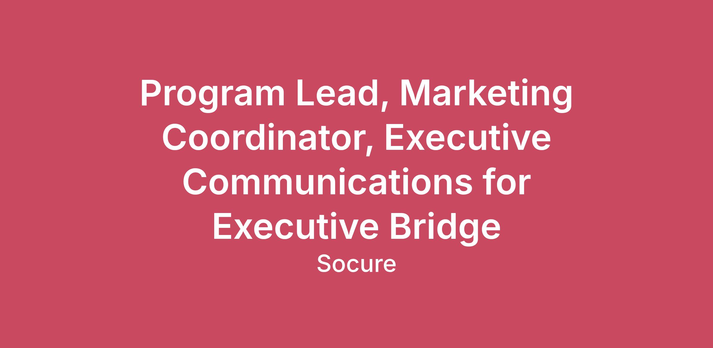 Why Socure?Socure is building the identity trust infrastructure for the digital economy — verifying 100% of good identities in real time and stopping fraud before it starts. The mission is big, the problems are complex, and the impact is felt by businesses, governments, and millions of people every day.We hire people who want that level of responsibility. People who move fast, think critically, act like owners, and care deeply about solving customer problems with precision. If you want predictability or narrow scope, this won’t be your place. If you want to help build the future of identity with a team that holds a high bar for itself — keep reading.About Socure’s Executive Bridge ProgramThe Executive Bridge program is a high-visibility initiative designed to strengthen executive engagement, improve cross-functional alignment, and create more strategic connection points between Socure’s leadership team, customers, and key internal stakeholders. The program plays an important role in ensuring executive interactions are thoughtful, well-prepared, and aligned to business priorities.As the program continues to grow, there is a meaningful opportunity to refine how it operates, strengthen its structure, and elevate its impact across the organization. This role is ideal for someone who is energized by both execution and improvement - someone who can manage the details at a high level while also helping shape the next phase of the program.About the roleThe Program Lead, Executive Bridge is responsible for owning and elevating Socure’s Executive Bridge program. This is a high-visibility, high-trust role that works closely with executive stakeholders and cross-functional partners to ensure the program is strategically aligned, operationally strong, and executed with precision.This individual will lead program planning, executive communications, stakeholder coordination, and select executive and customer-facing event support. The role requires someone who can operate confidently in executive settings, manage complex initiatives across multiple teams, and bring exceptional attention to detail to every interaction and deliverable.Reporting into Marketing leadership, this person will help drive the continued evolution of the Executive Bridge program by improving processes, increasing visibility, and creating a more scalable operating model for executive engagement.What you'll doOwn the strategy, planning, and execution of Socure’s Executive Bridge program.Partner closely with executive stakeholders to understand priorities, anticipate needs, and ensure strong follow-through across initiatives.Drive cross-functional coordination across Sales, Marketing, Customer Success, Operations, Product, and other internal teams to support executive engagement efforts.Prepare high-quality executive communications, briefing materials, meeting agendas, follow-up notes, and program updates.Ensure all executive-facing deliverables are polished, accurate, timely, and aligned to leadership priorities.Support planning and execution for executive and customer-facing events, including logistics, communications, stakeholder coordination, and post-event follow-up.Help create thoughtful, high-quality experiences for executive meetings, customer engagements, and strategic events.Lead program planning with strong attention to timelines, dependencies, logistics, and stakeholder management.Identify opportunities to refine workflows, improve operating rhythms, and strengthen program consistency and scale over time.Anticipate risks, identify gaps, and proactively solve for issues before they impact execution.Build repeatable processes that improve visibility, accountability, and cross-functional alignment.Track progress across key initiatives and provide leadership with clear updates, recommendations, and next steps.Operate with discretion, sound judgment, and professionalism in high-stakes and highly visible settings.What you bringBachelor’s degree required.2+ years of experience in program management, executive operations, executive communications, strategic planning, event planning, or a related function.Proven experience working with executive teams or senior leadership in a fast-paced environment.Strong cross-functional leadership skills with the ability to influence without direct authority.Exceptional attention to detail and commitment to high-quality execution.Strong executive writing skills, including experience preparing presentations, briefing documents, talking points, and strategic communications.Experience supporting or coordinating executive-level and customer-facing events.Demonstrated ability to manage multiple priorities, stakeholders, and deadlines simultaneously.Excellent judgment, organizational skills, and ability to handle sensitive information with discretion.Strong communication and interpersonal skills, with executive presence and a high level of professionalism.Experience driving complex initiatives from planning through execution.Ability to think strategically while also operating at a highly tactical level.Comfort with ambiguity and the ability to bring structure to evolving programs.Key CompetenciesStrong executive communication and writing skills.Ability to manage high-visibility, cross-functional initiatives with precision.Excellent planning, organization, and stakeholder management capabilities.Ability to anticipate needs, identify gaps, and improve processes proactively.Strong executive presence and judgment in sensitive or high-stakes situations.Ability to balance strategic thinking with tactical execution.Experience creating polished experiences for executive stakeholders and customers.Additional InformationThis role is ideal for a candidate who is excited by the opportunity to support a strategically important, high-visibility program with meaningful exposure to executive stakeholders across the business.The Executive Bridge program is established and valuable, with clear opportun