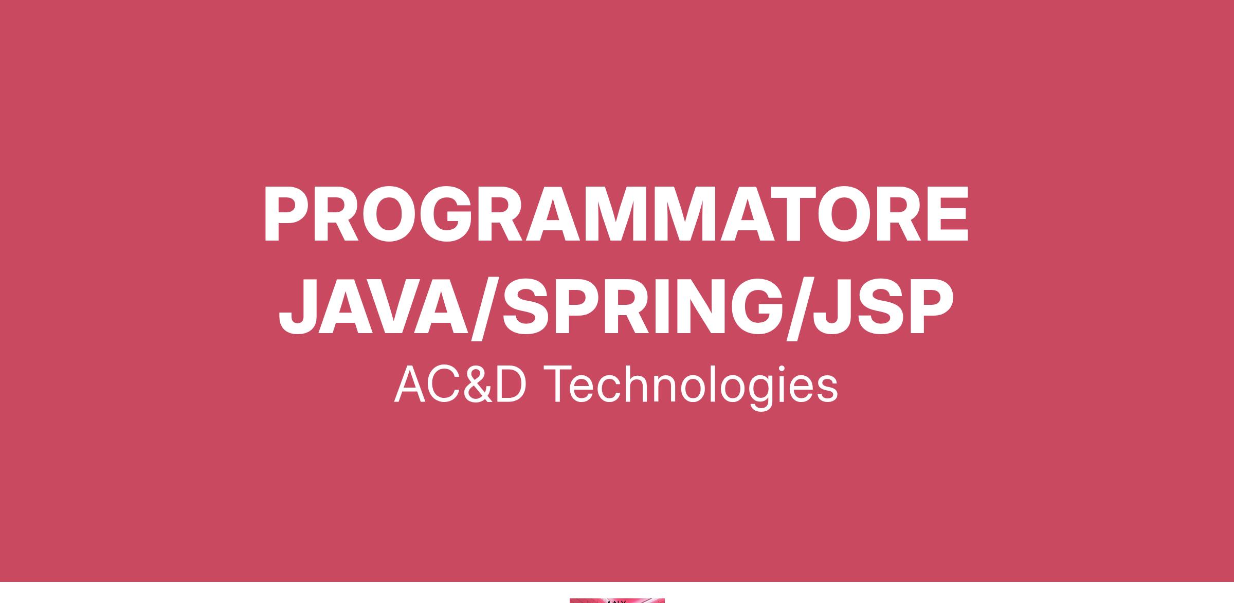 AC&D Technologies è una società di Consulenza, System Integration e Sviluppo applicativo da oltre 20 anni nel Settore ICT specializzata nella progettazione e nell’implementazione di soluzioni specifiche che rispondono ai criteri dell’eccellenza. Per ampliamento del nostro team ricerchiamo un PROGRAMMATORE JAVA/SPRING/JSP Partecipa all’esperienza di innovazione tecnologica che viviamo ogni giorno in AC&D Technologies Candidati ora!.