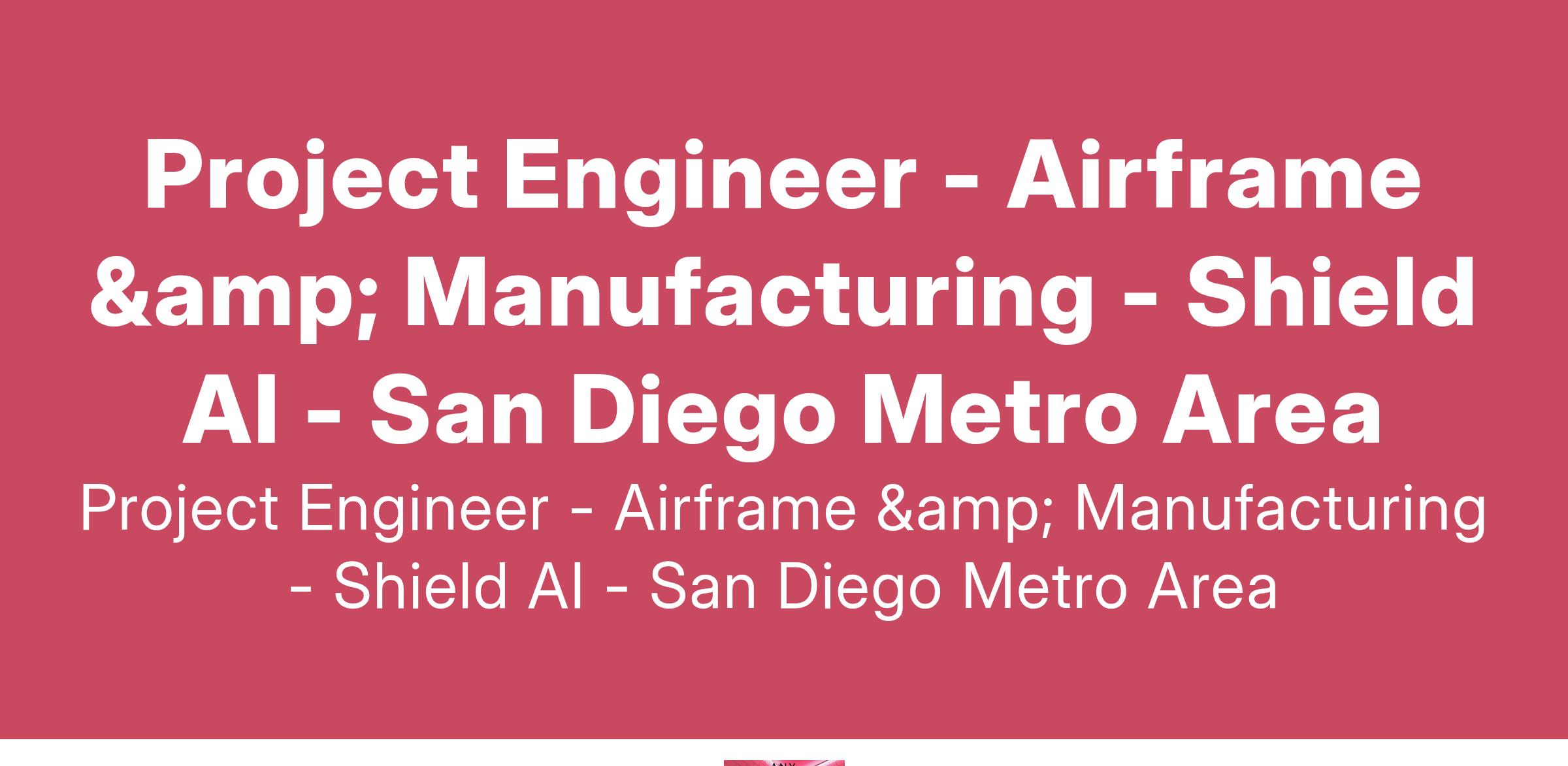 Shield AI is seeking a Project Engineer - Airframe & Manufacturing to lead the design, development, and production of high-performance airframe structures for our next-generation autonomous aircraft platform. This role will require expertise in composite and metallic structural design, manufacturing processes, and full-aircraft integration to develop mission-ready systems optimized for low weight, high durability, and aero structural efficiency.