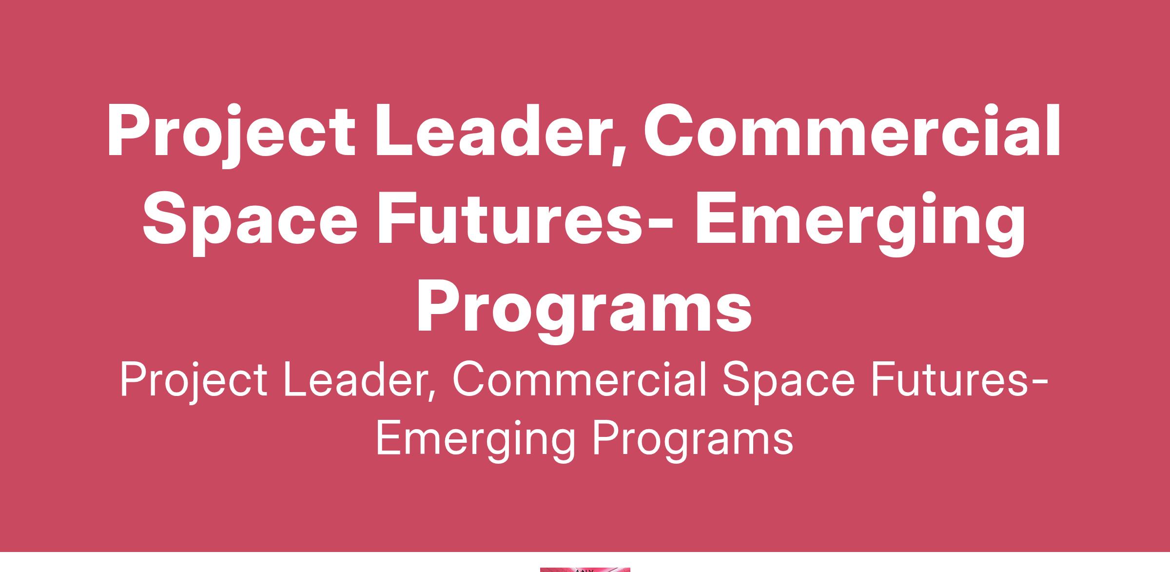 Project Leader, Commercial Space Futures- Emerging Programs