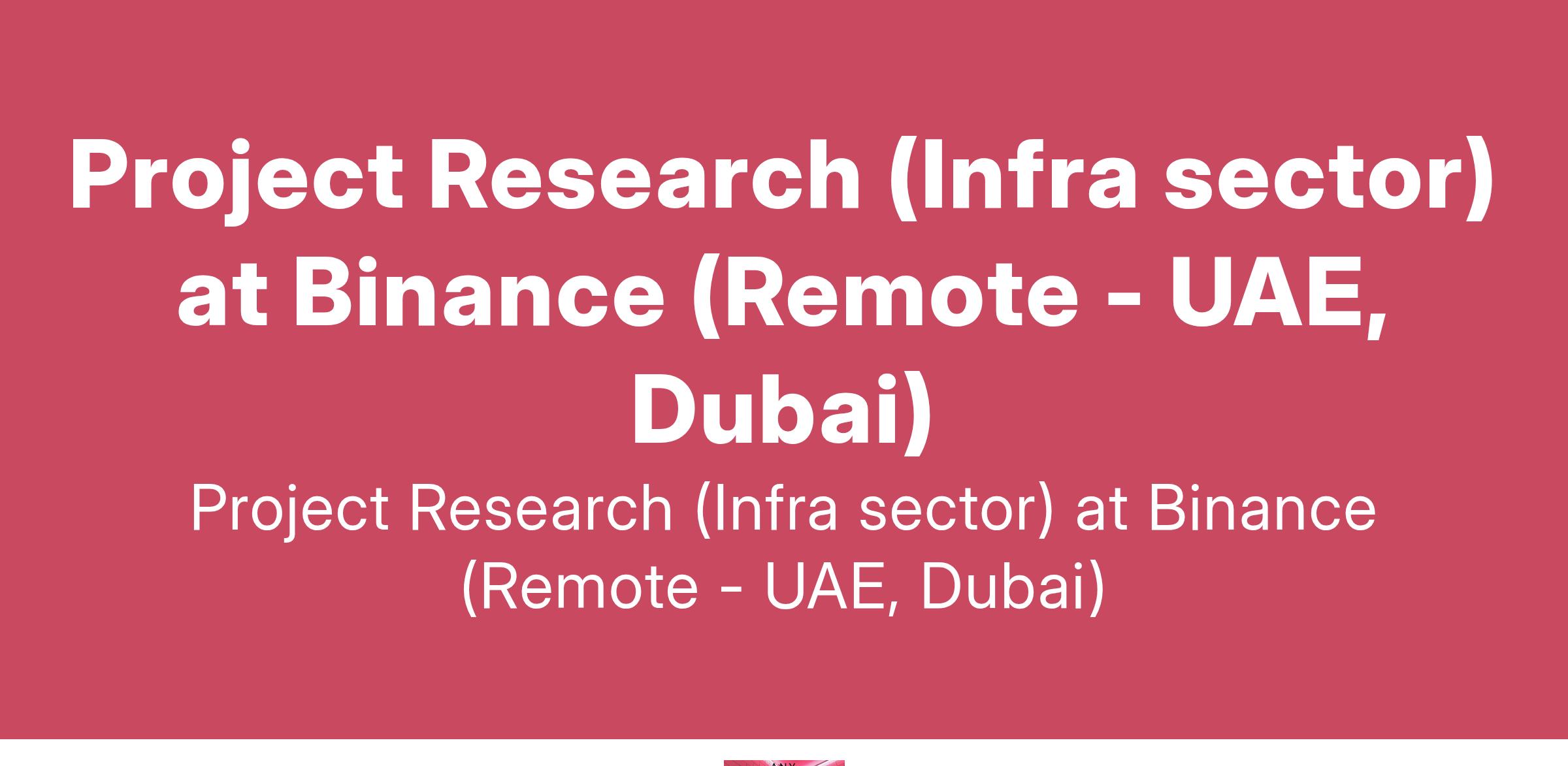 Project Research (Infra sector) at Binance (Remote - UAE, Dubai)