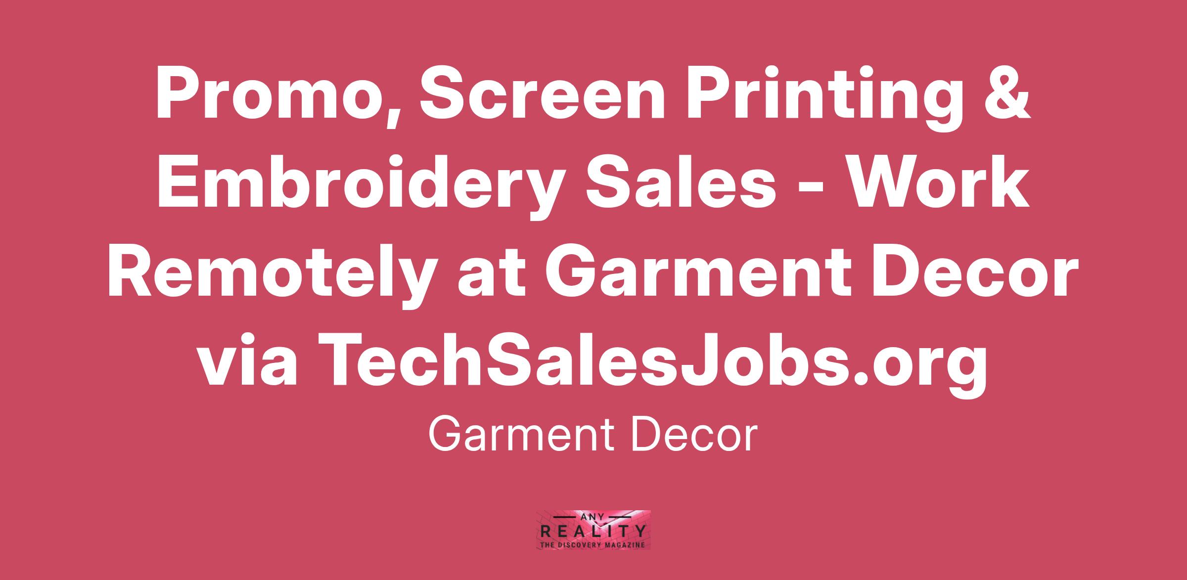 - Manage existing relationships and offer new services and products available from Garment Decor