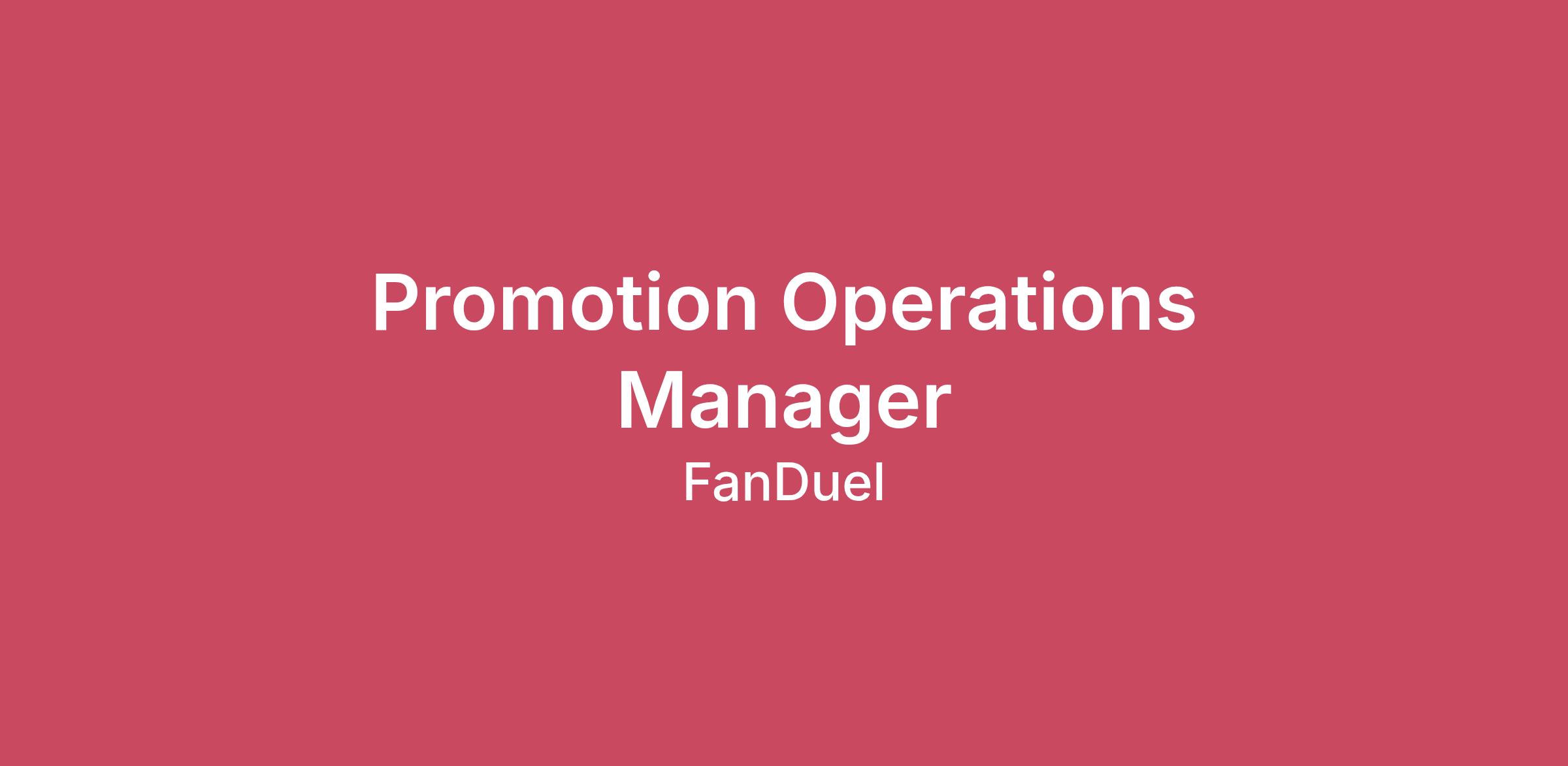FanDuel is looking for a Promotion Operations Manager to drive the execution of promotions across all verticals. You will play a key role on the Promotion Operations team, managing a team of Promo Ops Associates while collaborating with multiple departments, including CRM, Multi-Product Play, Acquisition/Growth, Retention, Customer Support, VIP and engineering teams. This is an exciting opportunity to help elevate revenue-driving marketing initiatives at a premier gaming company.
