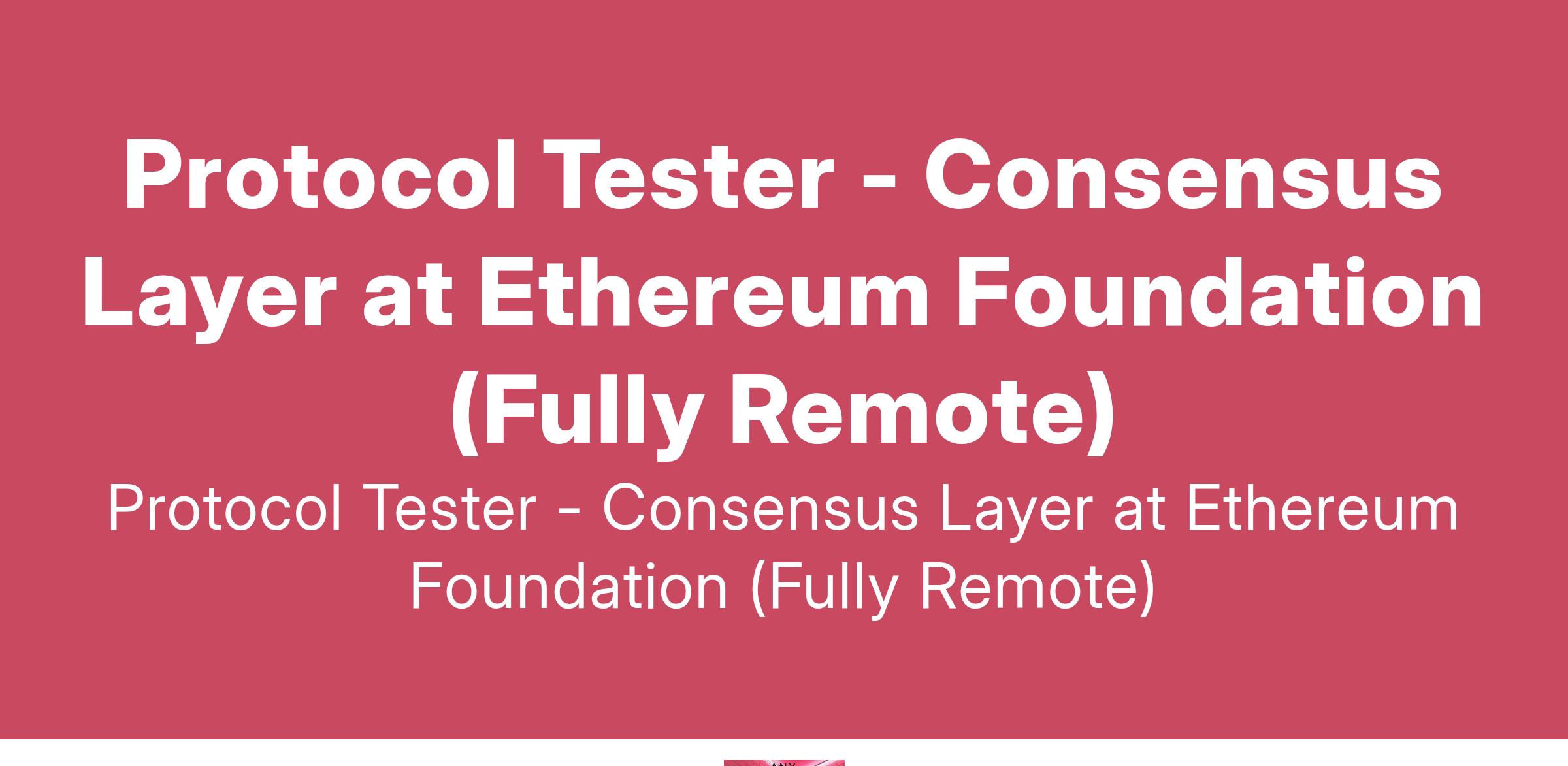 Protocol Tester - Consensus Layer at Ethereum Foundation (Fully Remote)