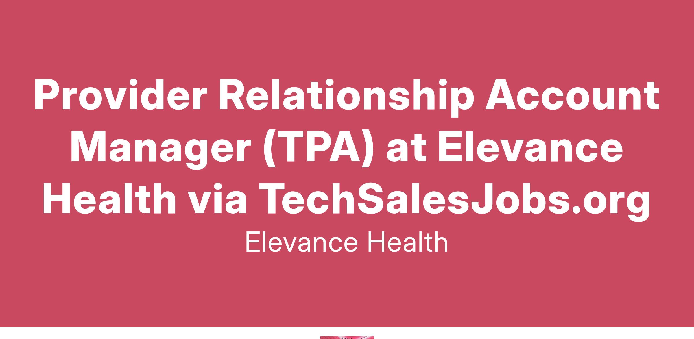 PND > Provider Relationship Account MgmtPlease be advised that Elevance Health only accepts resumes for compensation from agencies that have a signed agreement with Elevance Health. Any unsolicited resumes, including those submitted to hiring managers, are deemed to be the property of Elevance Health.