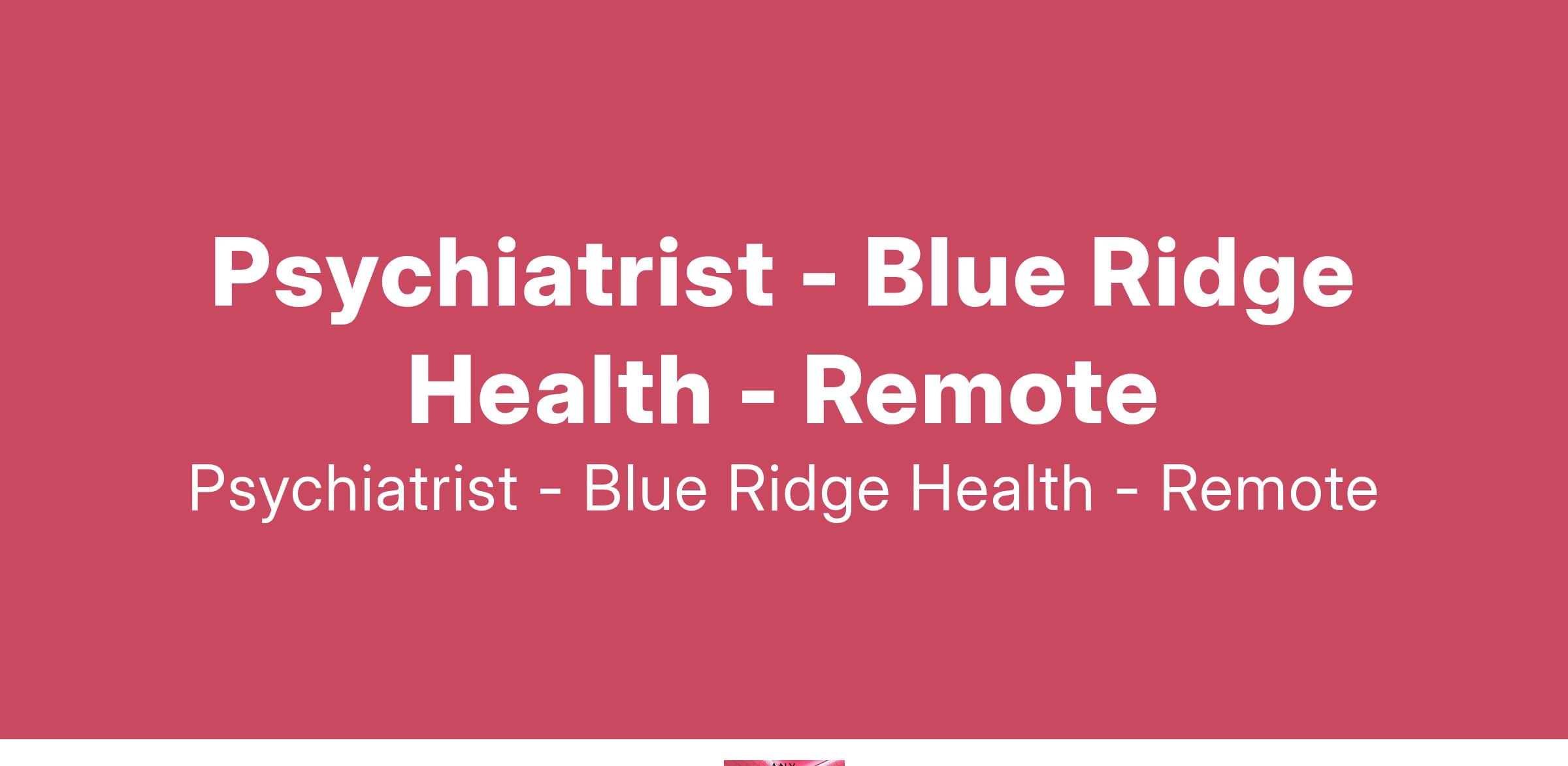 Blue Ridge Health is currently seeking a Psychiatrist to be part of our Behavioral Health team in Waynesville, NC
