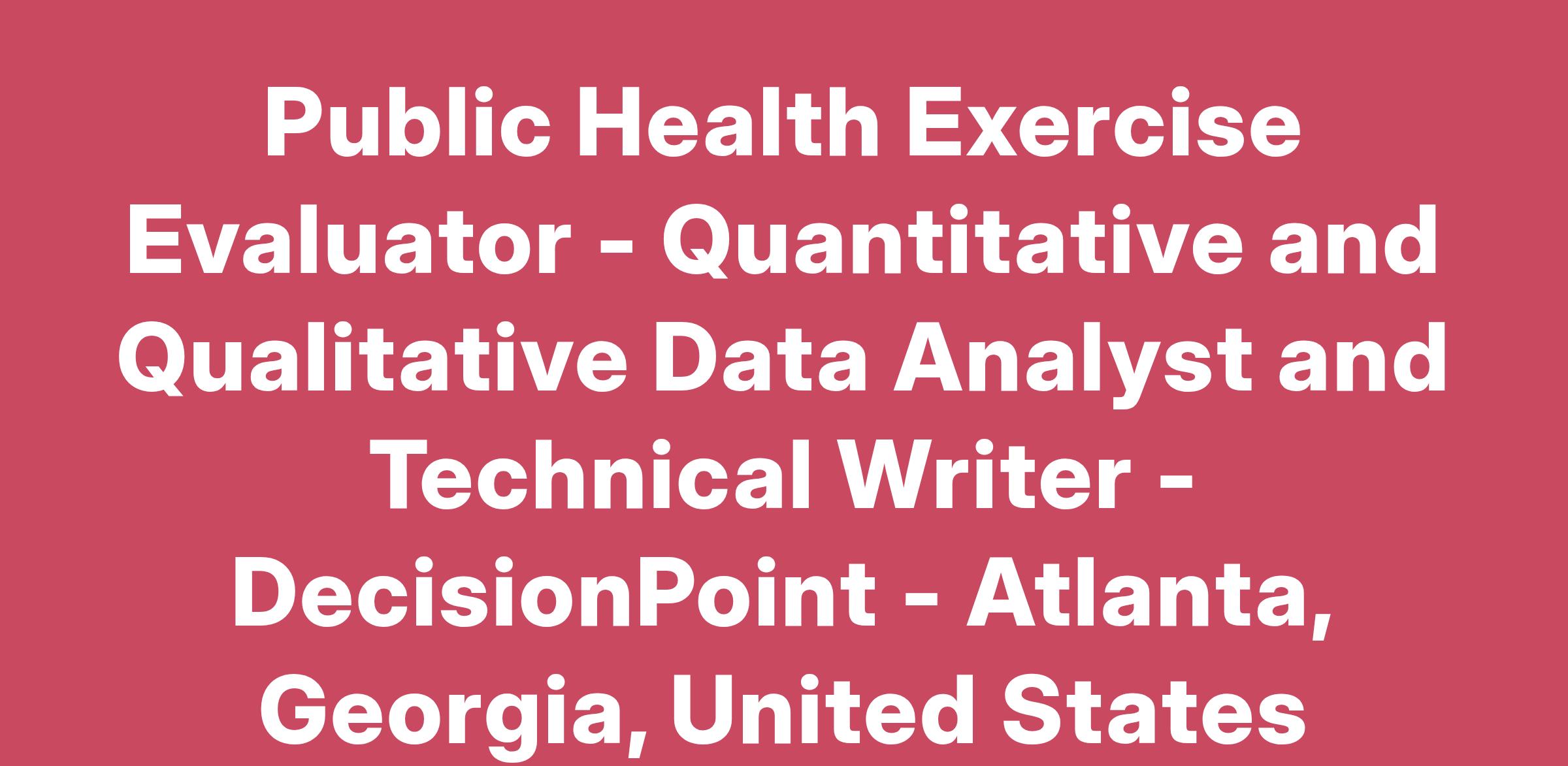 DecisionPoint is seeking a Public Health Exercise Evaluator - Quantitative and Qualitative Data Analyst and Technical Writer to provide exercise training and evaluation in support to the PXE Evaluation Team to ensure various needs are met throughout the exercise evaluation cycle, including: