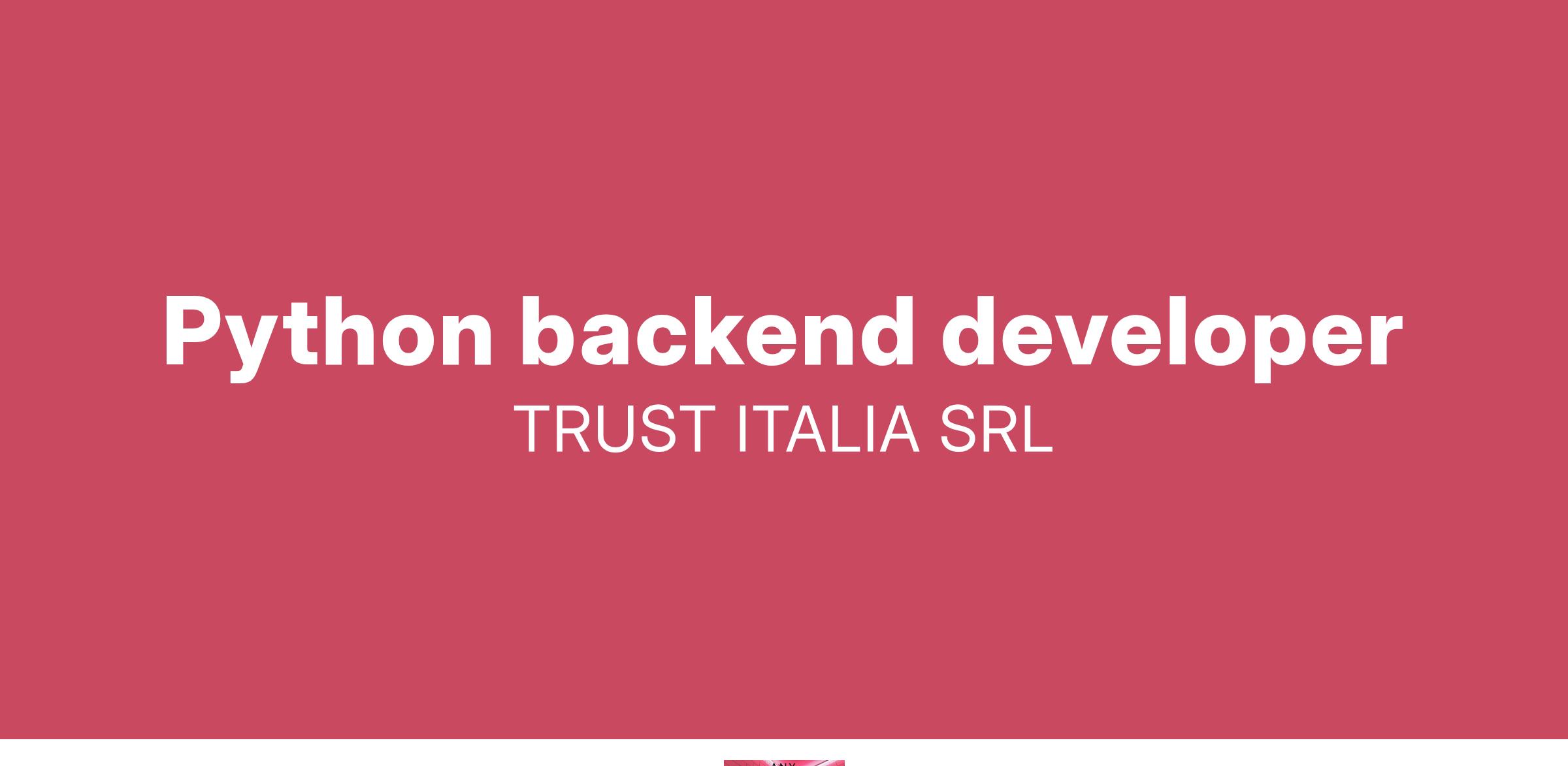 Trust Italia Srl è una società di consulenza informatica nata da professionisti del settore di decennale esperienza offre soluzioni globali per l’informatica negli ambienti web e non solo. Soluzioni che sono il punto d’incontro tra un ampio bagaglio di competenze progettuali e le più avanzate metodologie di sviluppo. Genera valore nelle aziende fornendo soluzioni in grado di far funzionare il loro business. Trust Italia ha un forte Know How in ambito bancario / Assicurativo nonché è fortemente legata allo sviluppo di applicativi custom per tutti gli altri settori tra cui : Servizi, Oil&gas, Sanità. Attualmente stiamo cercando: 1 Python middle Disponibilità immediata/breve.