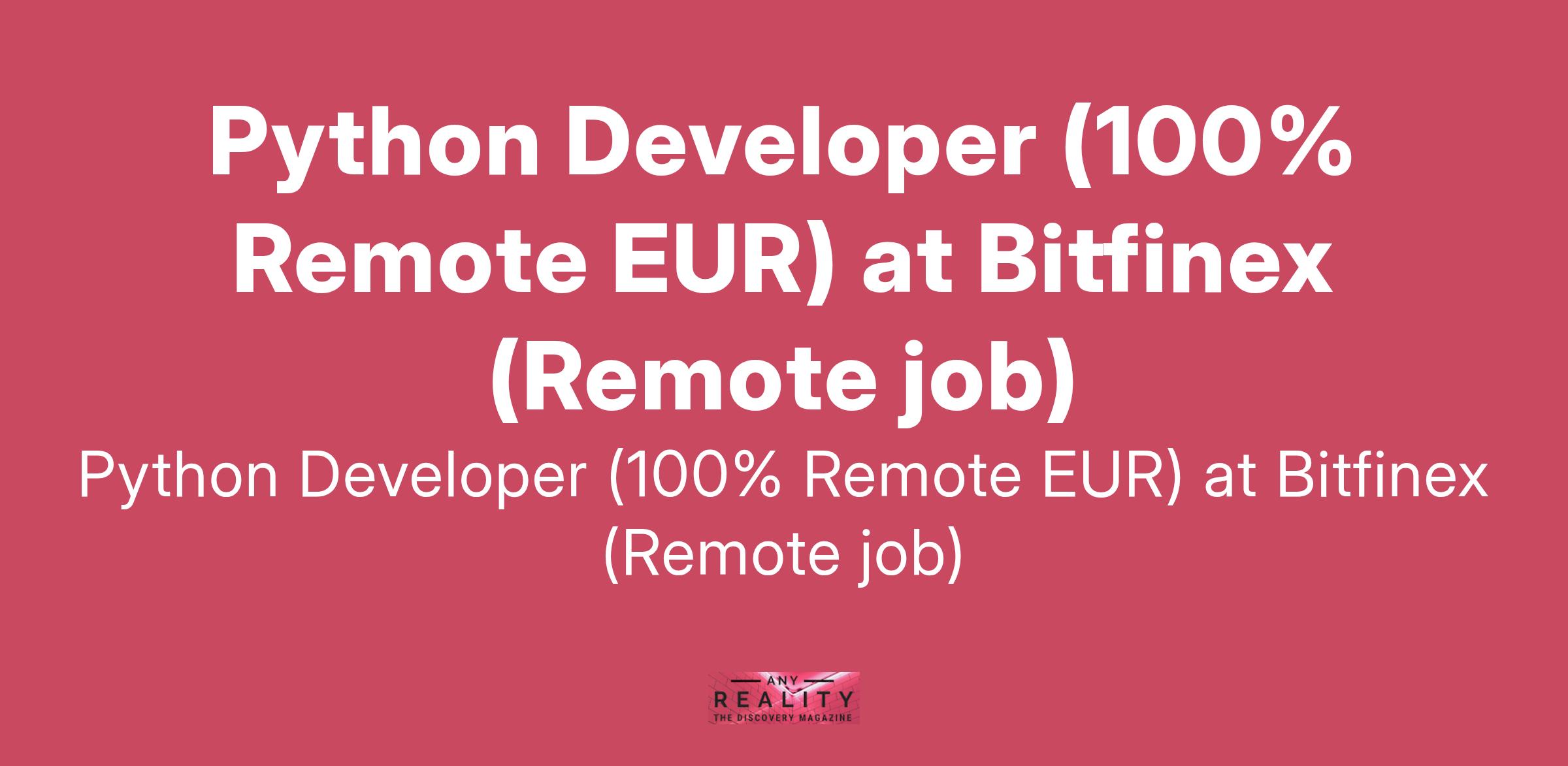 Python Developer (100% Remote EUR) at Bitfinex (Remote job)