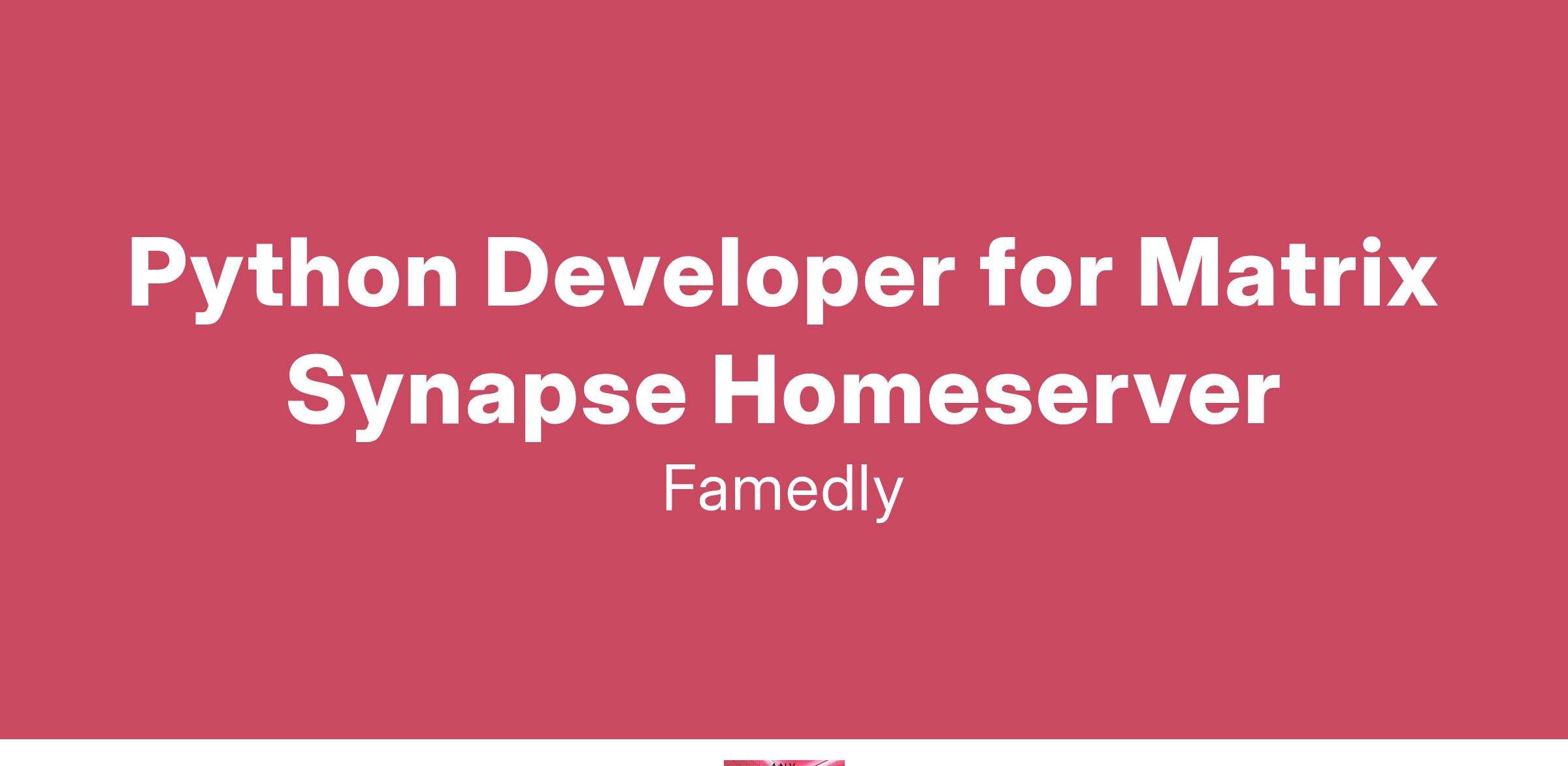 Join Famedly to work on the Matrix Synapse Homeserver, the open-source core of the Matrix ecosystem. Matrix is an open standard for decentralized, secure communication, and Synapse is the reference homeserver implementation that powers a growing network of federated servers.
