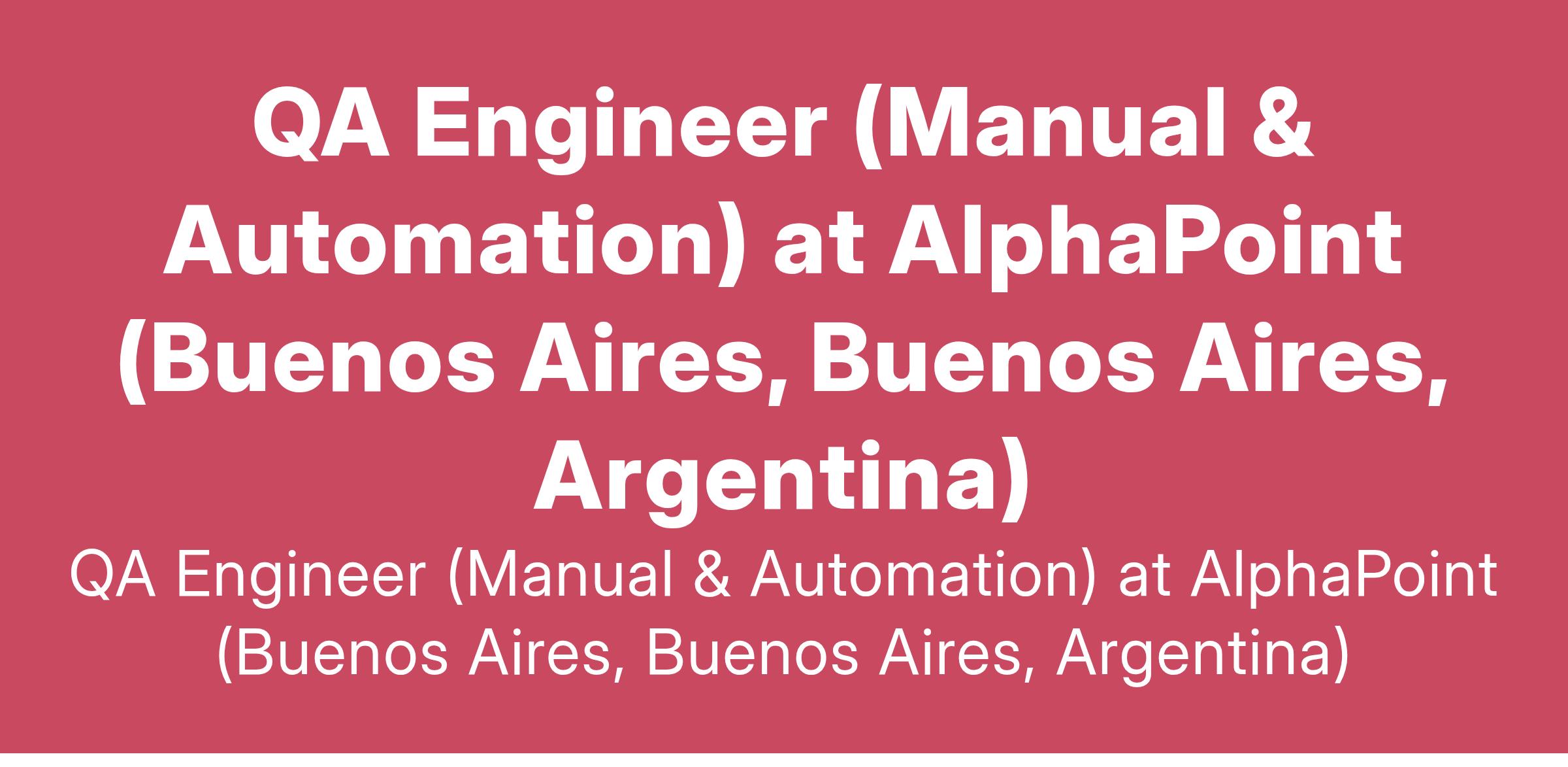 QA Engineer (Manual & Automation) at AlphaPoint (Buenos Aires, Buenos Aires, Argentina)