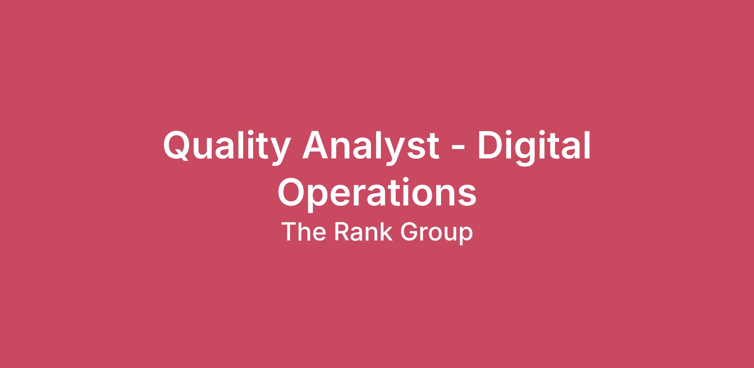 Quality Analyst - Digital Operations
