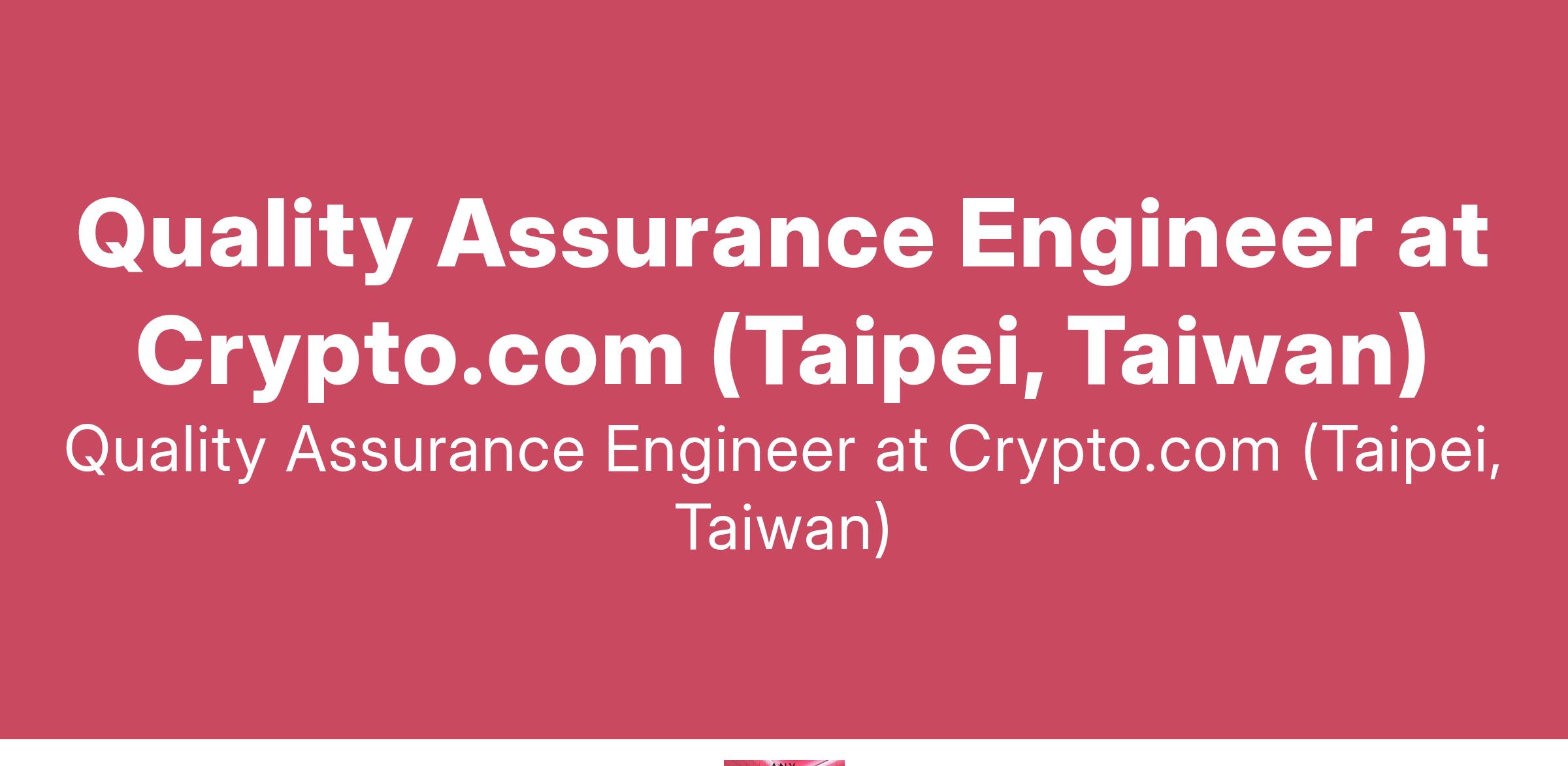 Quality Assurance Engineer at Crypto.com (Taipei, Taiwan)