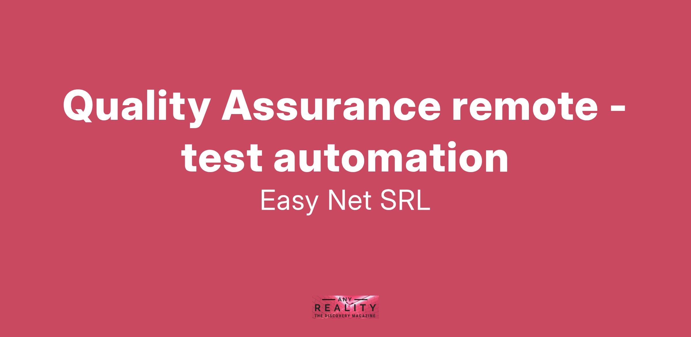 Easy Net S.r.l. opera da più di 10 anni nel mondo della consulenza tecnologica, della progettazione e gestione di architetture complesse e dello sviluppo di applicazioni software. Siamo certificati UNI EN ISO 9001:2008 per le attività di progettazione, sviluppo e manutenzione di software applicativo e quelle di progettazione ed erogazione di servizi IT. I nostri consulenti sono esperti in tutte le più moderne tecnologie e mantengono aggiornata la propria professionalità con una formazione costante. Siamo attivi su progetti di sviluppo interno e in consulenza per: Gestione progetti con PM e PMO qualificati Analisi funzionale e tecnica Sviluppo applicazioni software front-end e back-end Testing System administration, cloud e on premise Data management e business intelligence Vieni a conoscerci su www.easy-net.it Siamo alla ricerca, per un nostro cliente, di un profilo per attività di test automation da remoto con buone competenze Java e Selenium . Gradita la conoscenza di Jmeter.