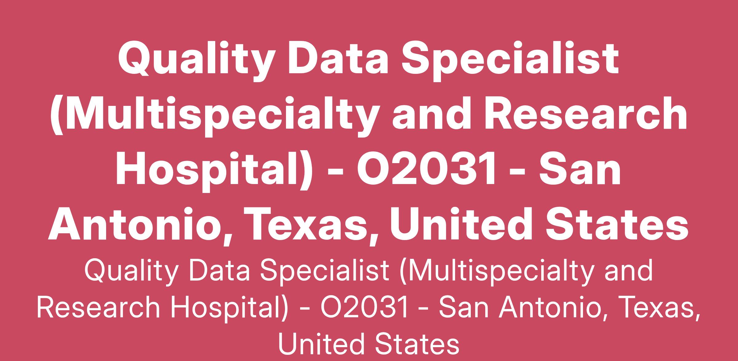DescriptionThe Hospital Quality Data Specialist collects, analyzes, coordinates, and reports hospital performance data to support quality and safety improvement initiatives and regulatory compliance. This role collaborates with clinical teams and leadership to ensure data integrity and timeliness of data submissions, identify trends, and drive improvements in patient care and safety. Support hospital compliance with reporting requirements based on Joint Commission, CMS, and UT Health-based quality compliance requirements.