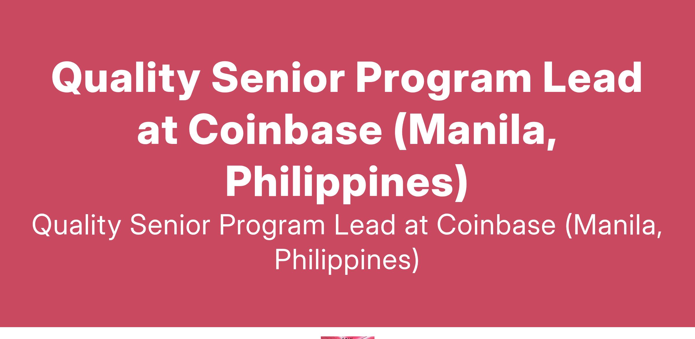 Quality Senior Program Lead at Coinbase (Manila, Philippines)