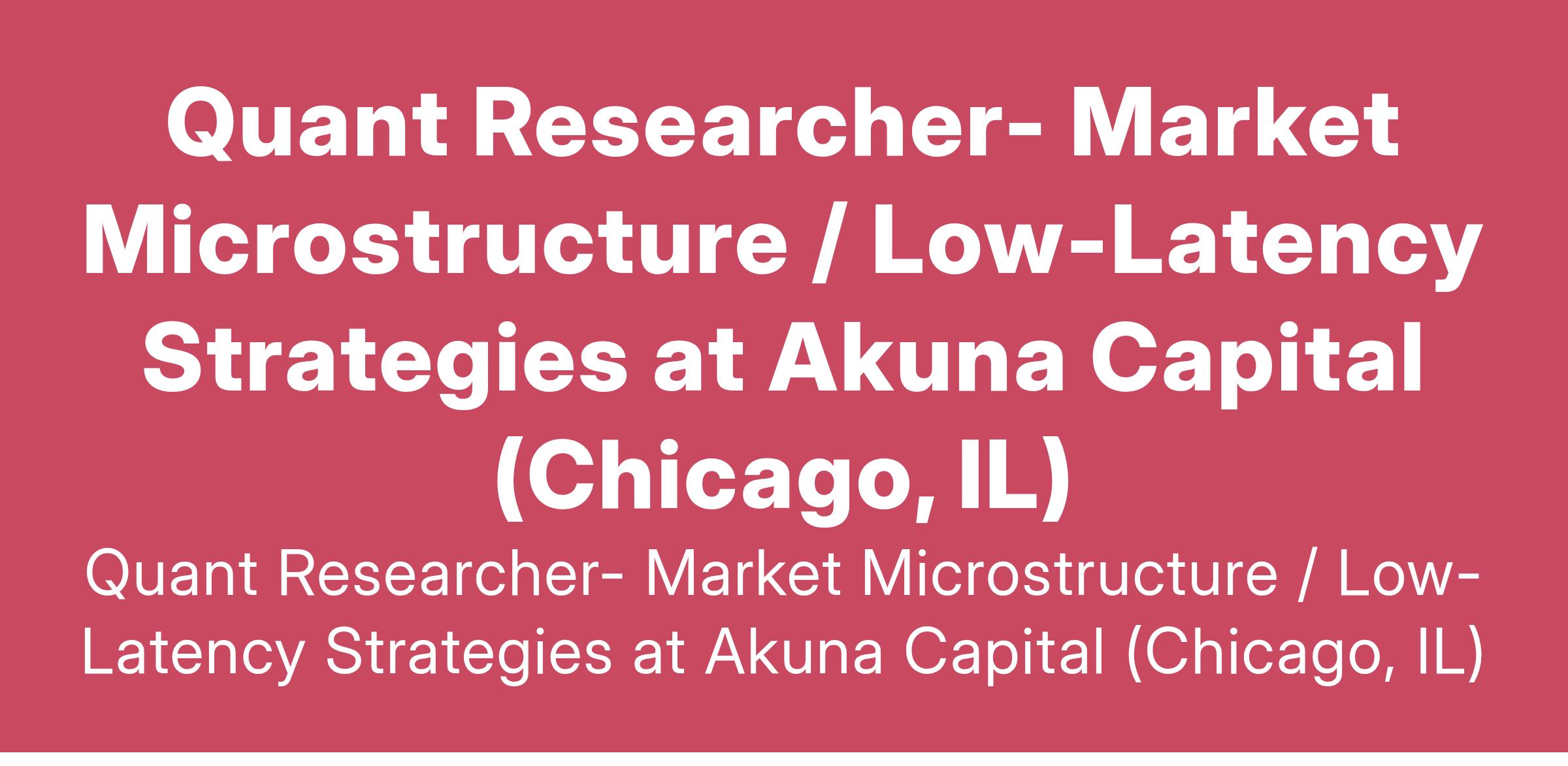 Quant Researcher- Market Microstructure / Low-Latency Strategies at Akuna Capital (Chicago, IL)