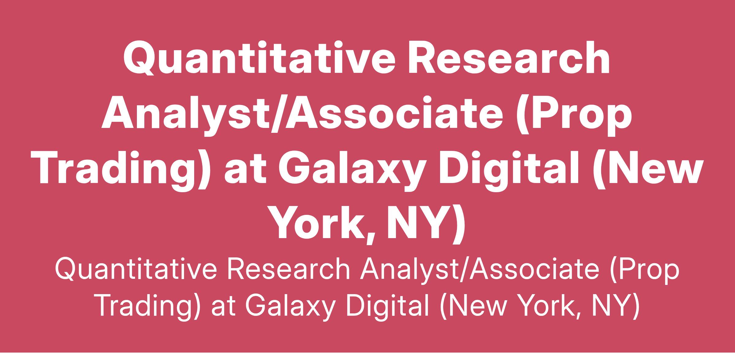Quantitative Research Analyst/Associate (Prop Trading) at Galaxy Digital (New York, NY)