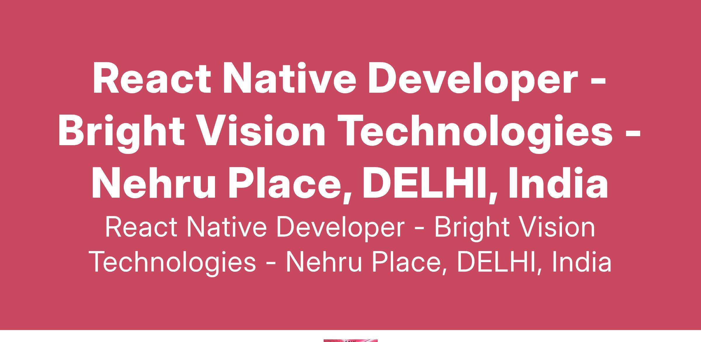 React Native Developer - Bright Vision Technologies - Nehru Place, DELHI, India