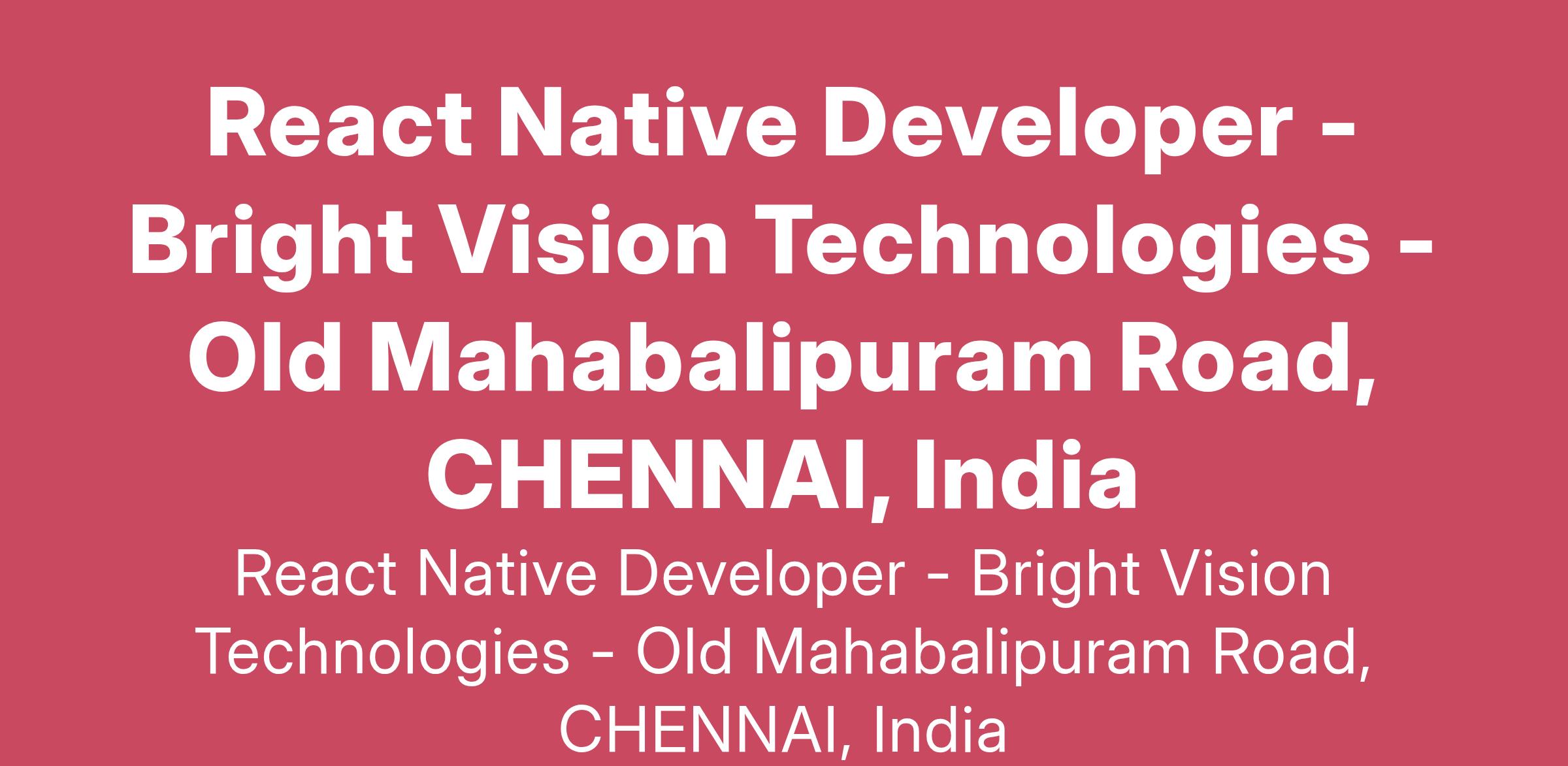 Bright Vision Technologies has an immediate Full-time opportunity for React Native Developer