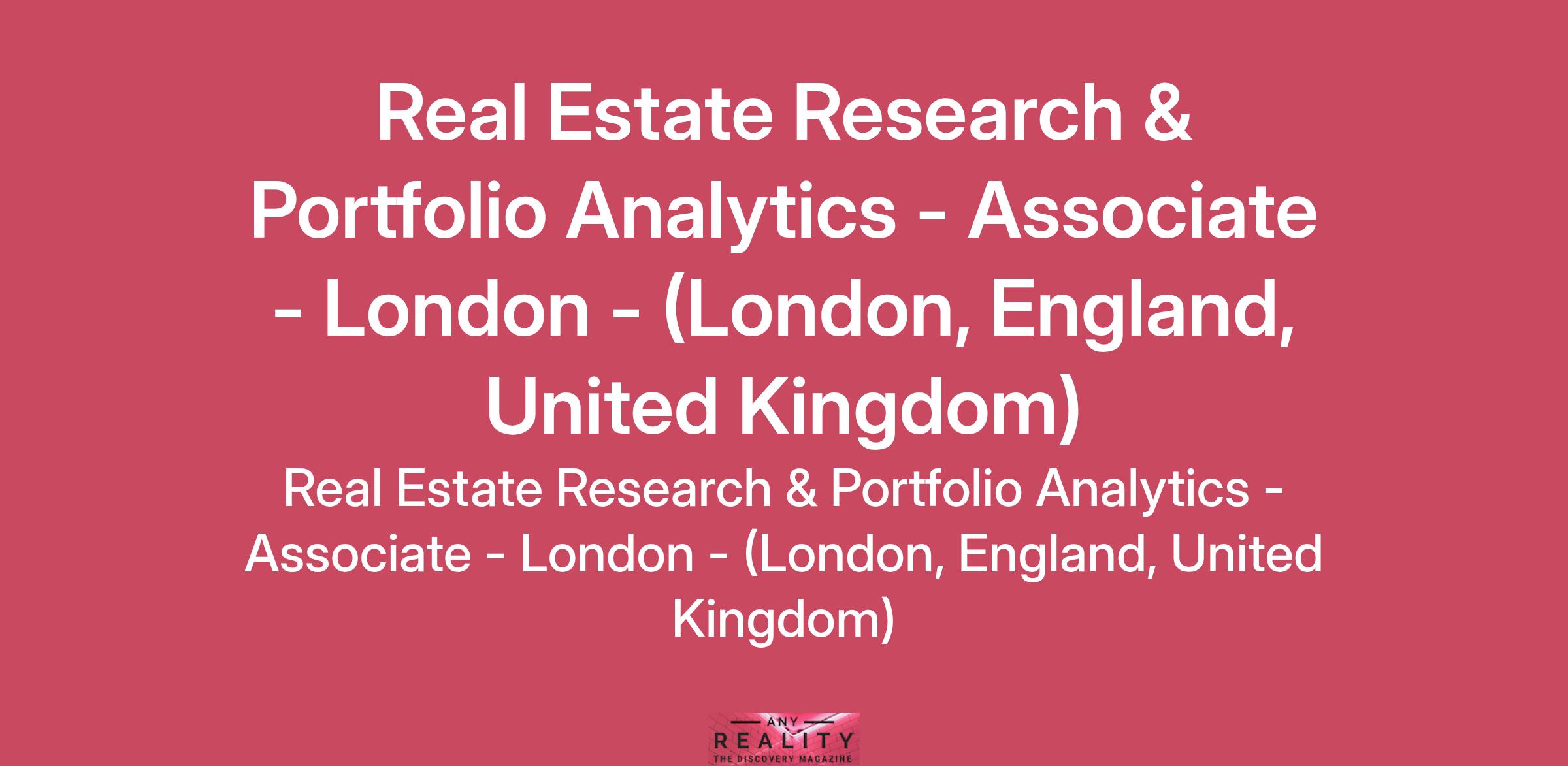 Associate │Real Estate Research & Portfolio Analytics │ London Real Estate