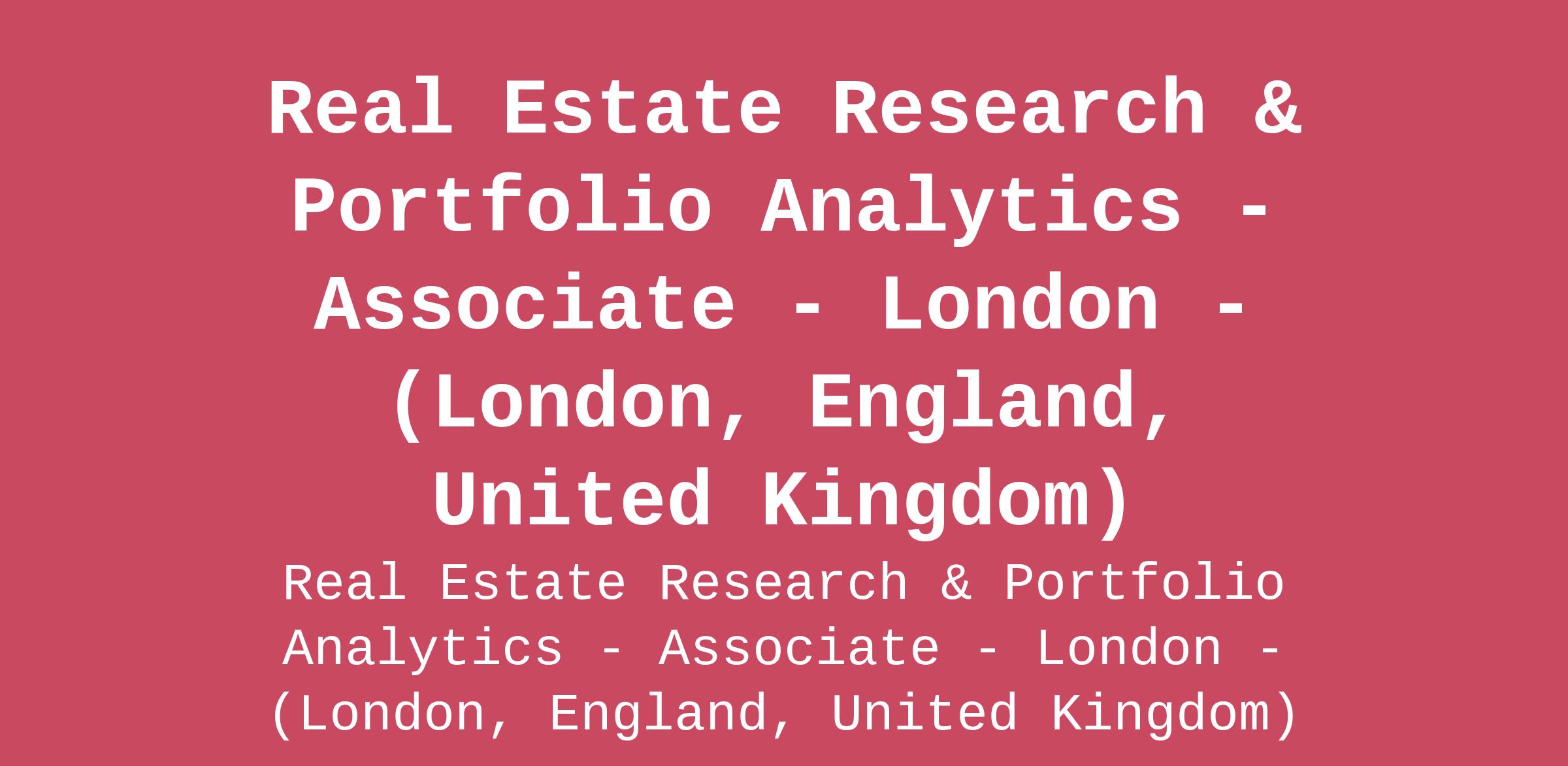 Associate │Real Estate Research & Portfolio Analytics │ London Real Estate