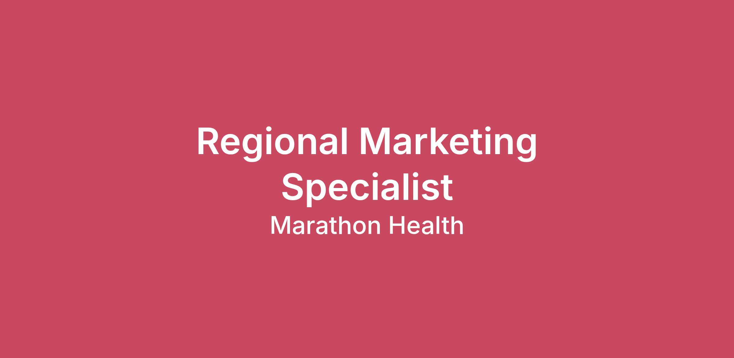 Marathon Health is a leading provider of advanced primary care in the U.S., serving 2.5 million eligible patients through approximately 630 employer and union-sponsored clients. Our comprehensive services include advanced primary care, mental health, occupational health, musculoskeletal, and pharmacy services, delivered through our 680+ health centers across 41 states. We also offer virtual primary care and mental health services accessible in all 50 states. Transforming healthcare delivery with a patient-first approach, we prioritize convenient access to both in-person and virtual care, resulting in improved health outcomes and significant cost savings. Committed to inclusivity and collaboration, we foster a positive work environment and recruit exceptional talent to ensure expertise and compassion in healthcare delivery. Marathon has been recognized as a five-time Modern Healthcare Best Places to Work in Healthcare winner and a six-time Best in KLAS award winner for employer-sponsored healthcare services.Location requirement: Candidates must reside in the Eastern Time Zone (ET).ABOUT THE JOBThe Regional Marketing & Engagement Specialist oversees the marketing and engagement efforts for a dedicated region or set of clients. This individual is highly skilled in consumer healthcare marketing strategies that drive patient awareness and engagement into our health centers and ancillary products. This person thrives in a fast-paced growth environment that balances leading and collaborating with multiple teams and stakeholders. You will work with a diverse, passionate team of marketers, and collaborate closely with multiple internal departments and clients. The Regional Marketing & Engagement Specialist will report to the Director of Patient Marketing & Engagement, while working closely with the broader Marketing team. ESSENTIAL DUTIES & RESPONSIBILITIESLead marketing, engagement and grassroots efforts for dedicated regionPartner with regional Operations leadership to support key strategic clients, conduct quarterly client reviews, and support strategic network markets within the regionUsing data, conduct quarterly review of performance metrics and upcoming engagement with Marketing and Operations leadershipPrepare monthly reports on client engagement and marketing efforts to share with regional Operations leadershipServe as liaison between regional Operations leaders and other Marketing teams to ensure meeting regional engagement and marketing needsLead development of engagement plans for strategic clients and support planning process for all clients in marketLead development of creative asset, content, and campaign development to drive regional client engagement strategiesAttend client onsite meetings and events as requestedQUALIFICATIONSBachelor’s degree in marketing, business, or communication required.3+ years of experience in consumer marketing requiredCandidates must reside in the Eastern Time Zone (ET)Ability to travel up to 25 - 30% within dedicated regionDESIRED ATTRIBUTESProject Management experience preferredHealthcare experience preferredExperience with analytical tools Track and report on various aspects of campaign effectiveness Strong execution capability with a focus on driving results Highly strategic, consultative teammate who can plan and execute Ability to think outside of the box and innovate with creative marketing strategies Proven track record of managing multiple priorities with cross-functional teamsAbility to articulate and present plans and have confidence in communicating with senior level team Collaborative team player who can build relationships and work productively with cross-functional teammatesPay Range: $75,000 - $85,000/yrThe actual offer may vary dependent upon geographic location and the candidate’s years of experience and/or skill level. We are accepting applications for this position until a candidate has been selected. To apply to this position and learn more about open jobs at Marathon Health, visit our careers page. Marathon Benefits SummaryWe believe in empowering teammates to do their best work and build better healthcare. Below are some of our benefit offerings. Eligibility is based on 24/hr week.Health and Well-Being: Free Marathon membership for in person and virtual care, employer paid life and disability insurance, and choice in medical/dental plans, vision, employer funded HSA, FSA, and voluntary illness, accident and hospitalization plans. Benefits are effective on the first of the month following date of hire. Financial Support: Competitive compensation, 401k match, access to financial coaching through our Employee Assistance ProgramLifestyle: Paid time off for vacation, sick leave, and more, holiday schedule